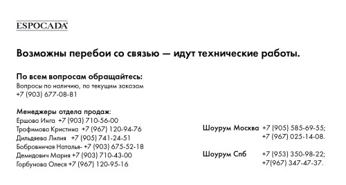 8 и 9 марта - выходные дни. Офис, шоу-румы и колл-центр не работают