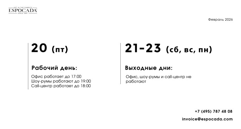 Мы создаем интерьерные ткани и басонные изделия более 25 лет. На сегодняшний день ткани Espocada присутствуют во всех крупных салонах России и ближайшего зарубежья.