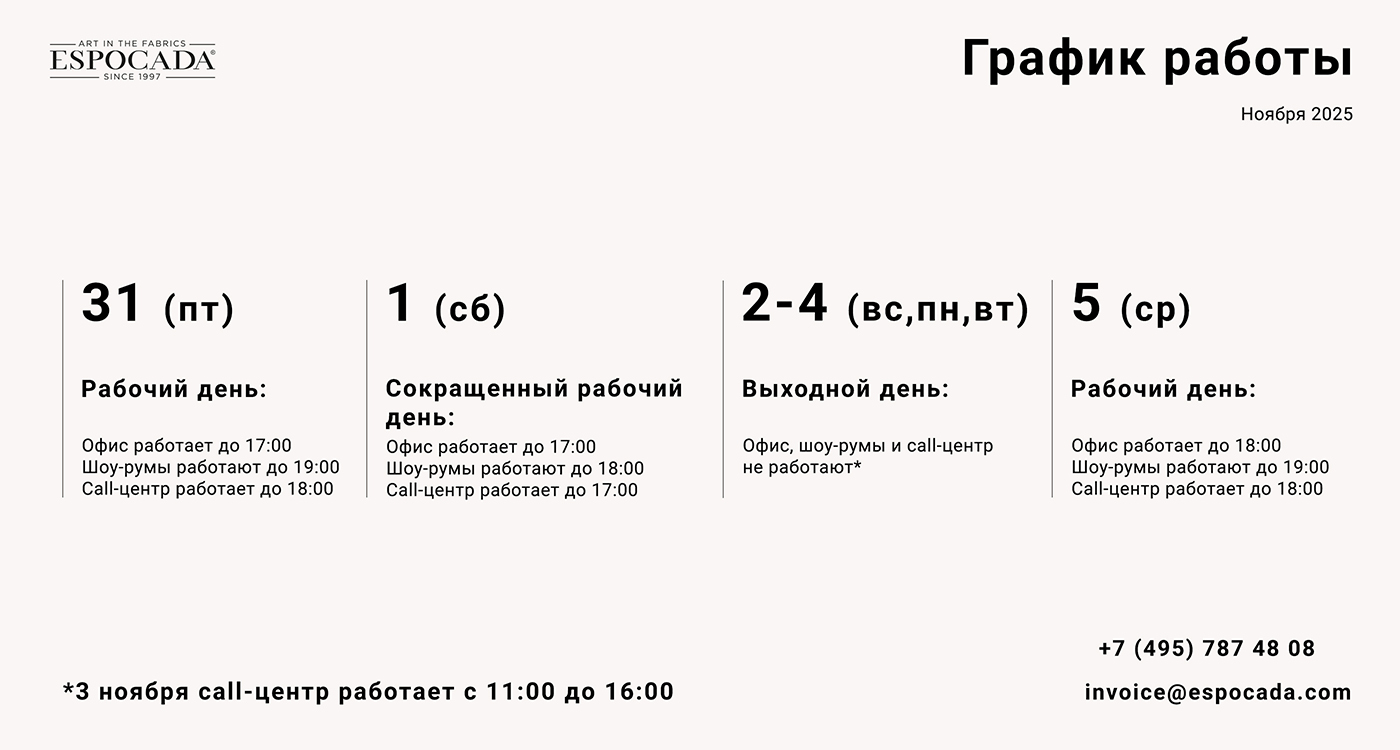 Отмечайте тег #ESPOCADA_OFFICIAL на ваших проектах с нашими тканями в Instagram.