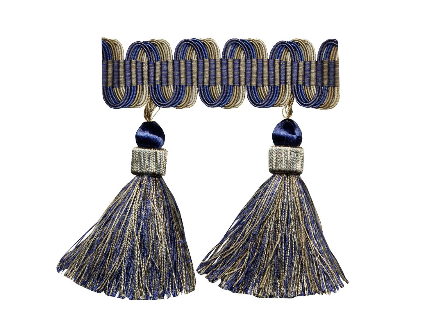 Бахрома с шариками и кисточками на средней тесьме из окрашенных нитей; ширина тесьмы - 30мм, длина шарика с кисточкой - 95мм; упаковка по 25м на картон