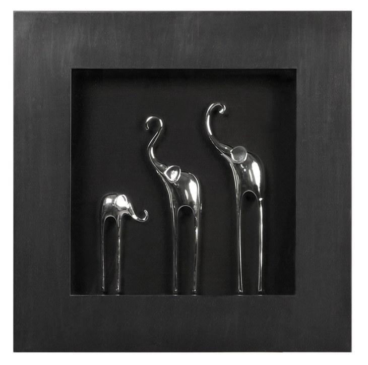 Настенное панно в деревянной раме под стеклом "три слона"