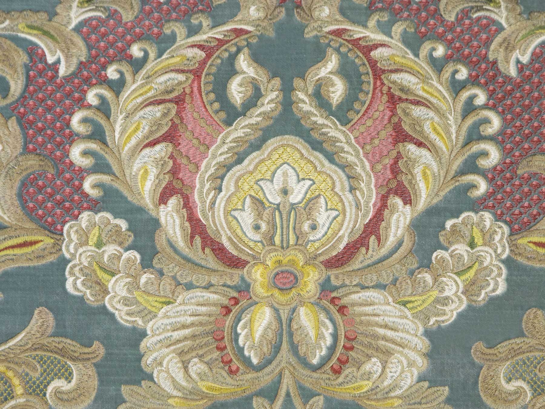 Ткань портьерная (бархат) из синтетических нитей, без печати, с вышивкой, ворсовое переплетение