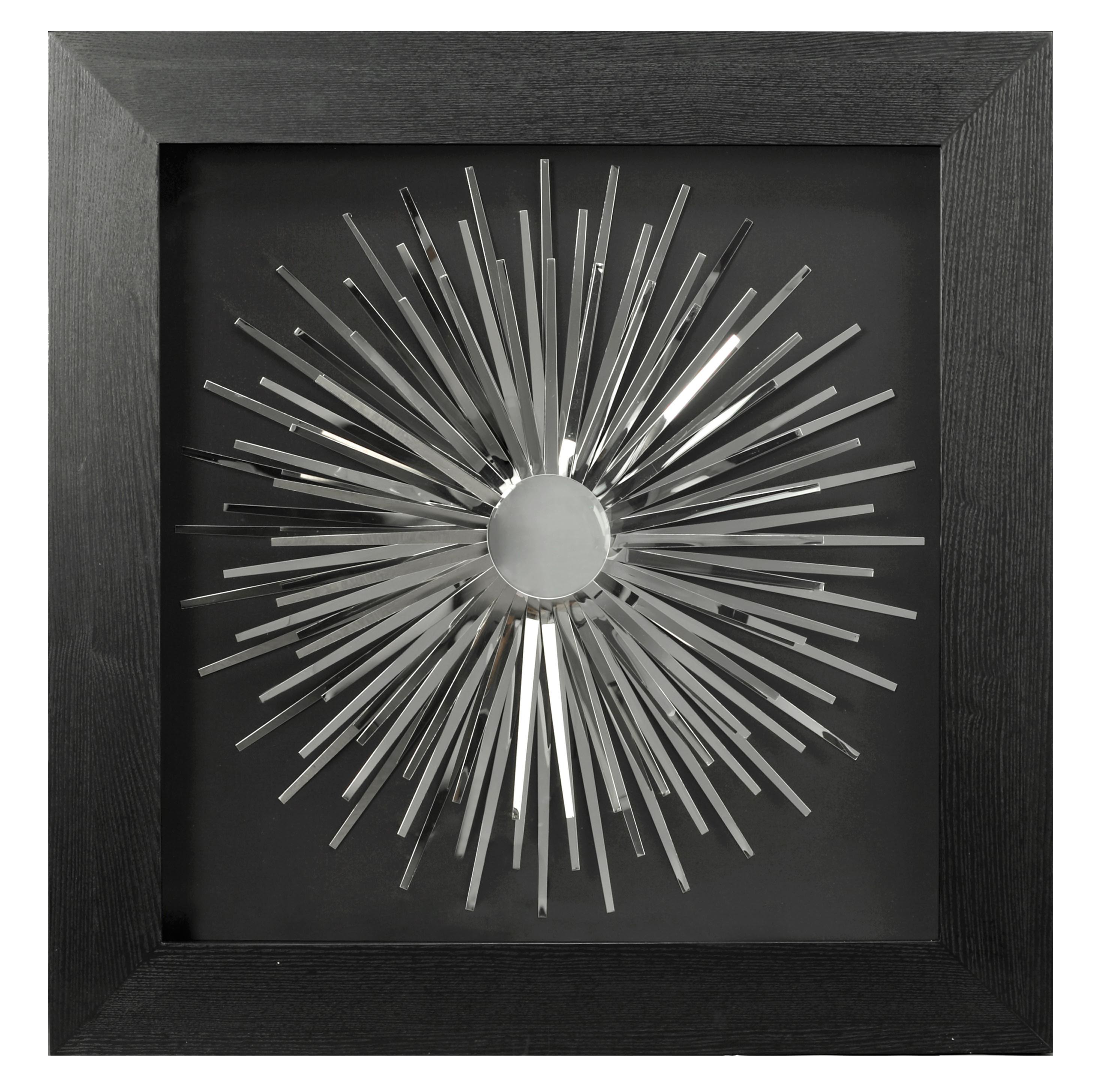 Настенное металлическое панно в черной раме из дерева под стеклом "металлический декор 2"