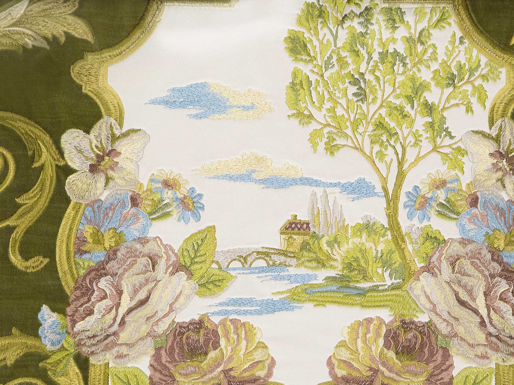 Ткань портьерная (бархат) из синтетических нитей, без печати, с вышивкой, ворсовое переплетение
