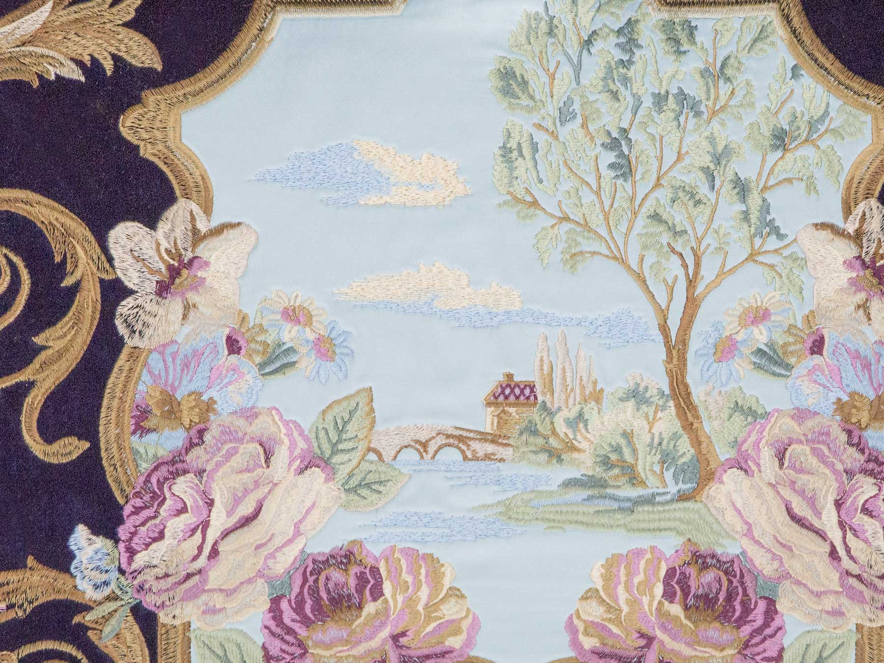 Ткань портьерная (бархат) из синтетических нитей, без печати, с вышивкой, ворсовое переплетение
