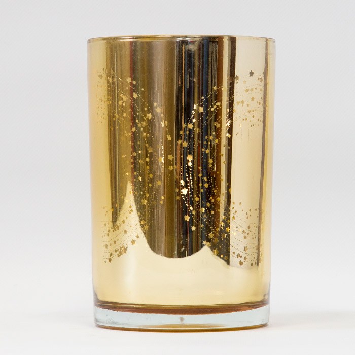 Подсвечник декоративный в форме вазы золотого цвета.