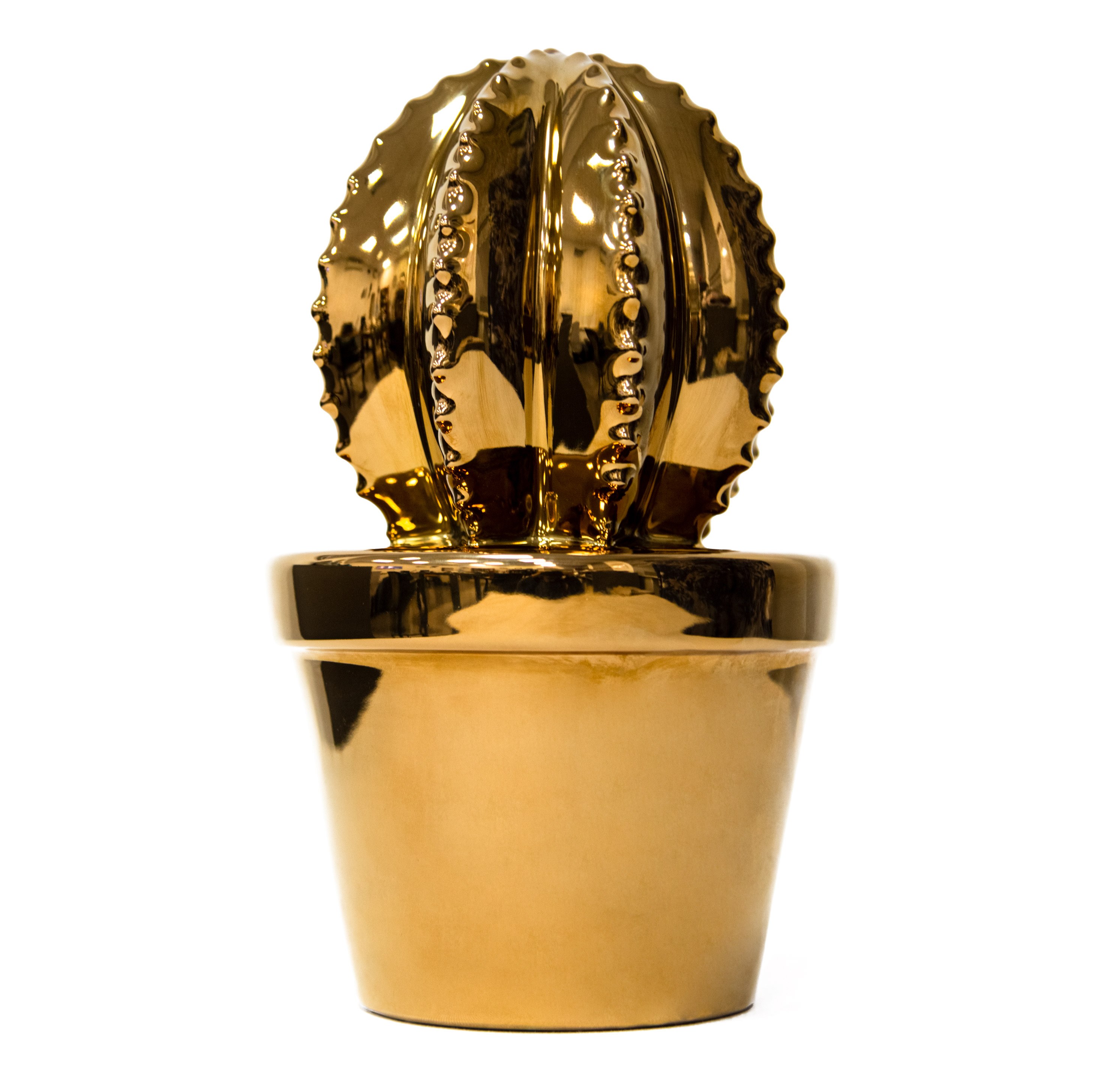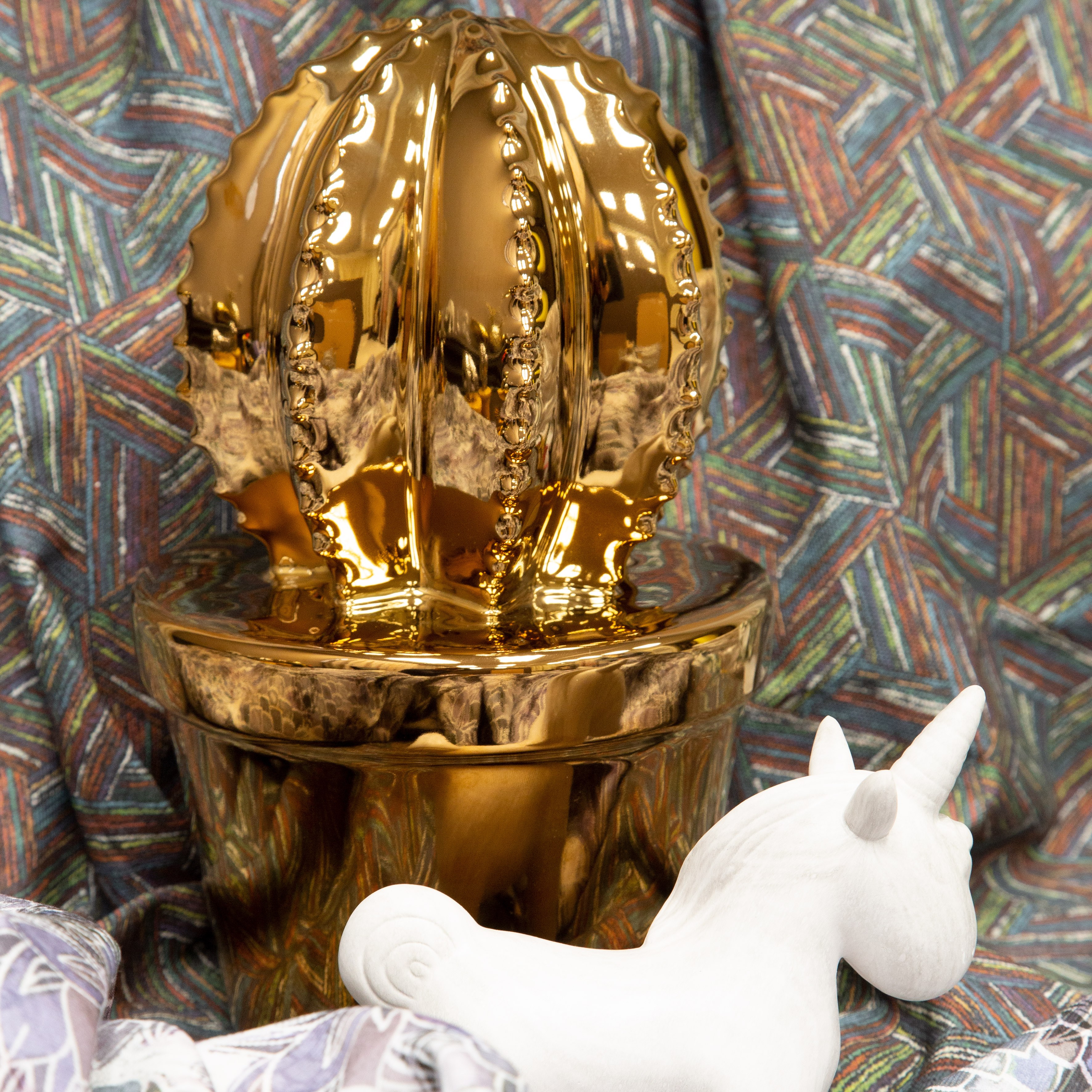 Статуэтка декоративная в виде кактуса золотого цвета.