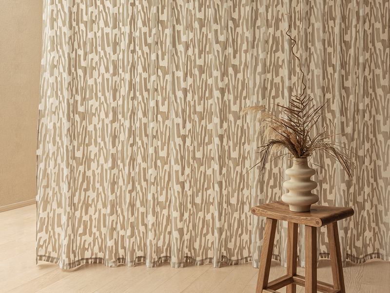 Визуализация папье-маше, иллюстрация элементов и форм. Абстрактный рисунок и полупрозрачная структура делают Papier-mâché превосходной тканью для оформления окон, так как она способствует естественному и слегка рассеянному освещению.