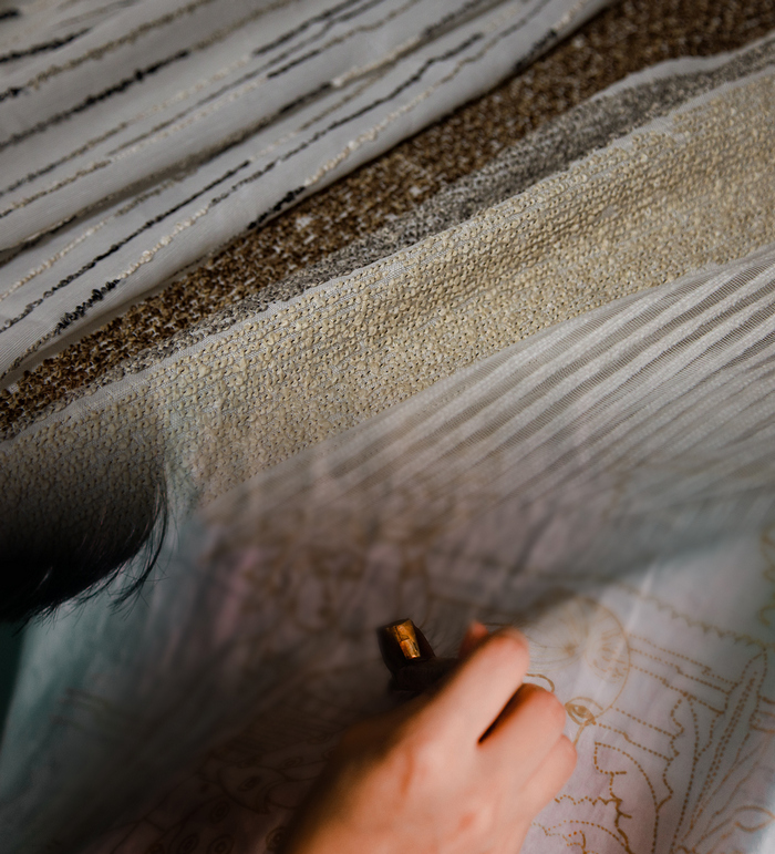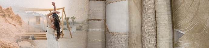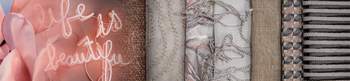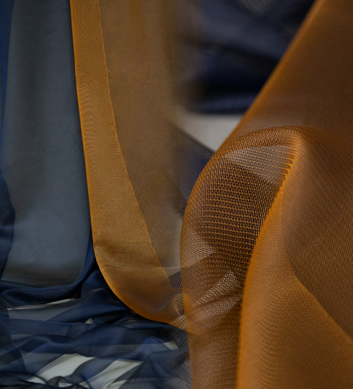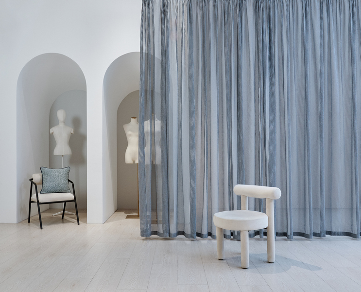 На ощупь ткани могут быть как грубоватыми и неровными, подчеркивающими искусно созданный эффект ручной работы, так и мягкими и струящимися, усиливающими впечатление легкости и подвижности в пространстве. Среди представленных в коллекции — много in-between-тканей, балансирующих на грани полупрозрачности. Большинство имеет комфортную ширину 300 см.