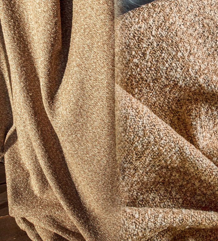 С первого взгляда ткань запоминается мелкоузорчатым переплетением, вдохновленным структурой букле. Глубокий рельеф, объемность и фактурность усиливают ощущение комфорта и уюта, появляющееся при прикосновении к этой ткани. Акрил в составе повышает износостойкость.