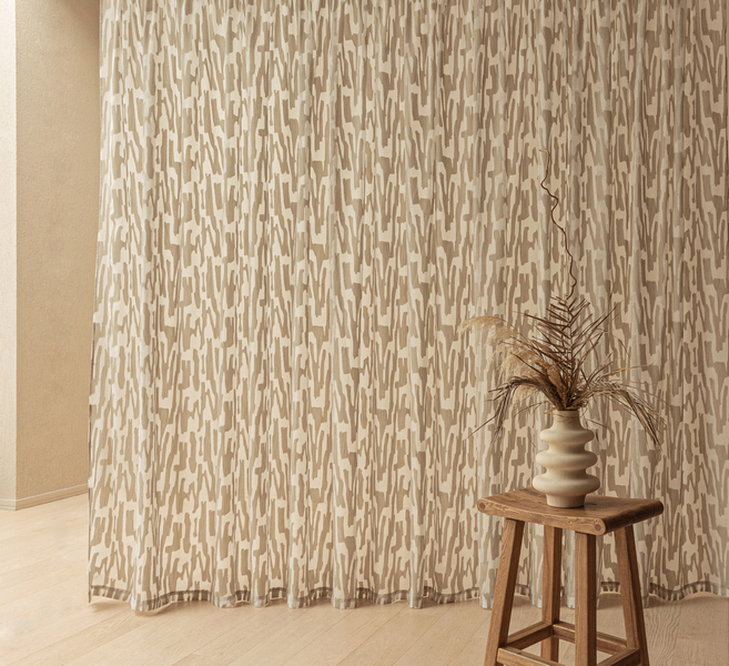 Полупрозрачная жаккардовая ткань выделяется наличием нескольких тонких полос и дает свету проникать сквозь такие же трехмерные, как и в дизайне Performance, нити, наполняя комнату приглушенным сиянием. Практически всё полотно выполнено в одном цвете, за счет чего фон получился сдержанным и спокойным.