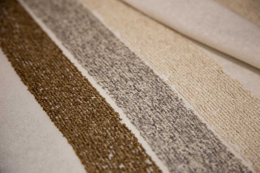 Отличается ненавязчивым цветным градиентом и значительно большим количеством полосок — впрочем, таких же нарочито распушенных и фактурных. Переходы между оттенками и число полосок олицетворяют движение, скрытый в нитях жаккарда ритм, что добавляет больше энергии в само пространство.