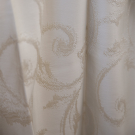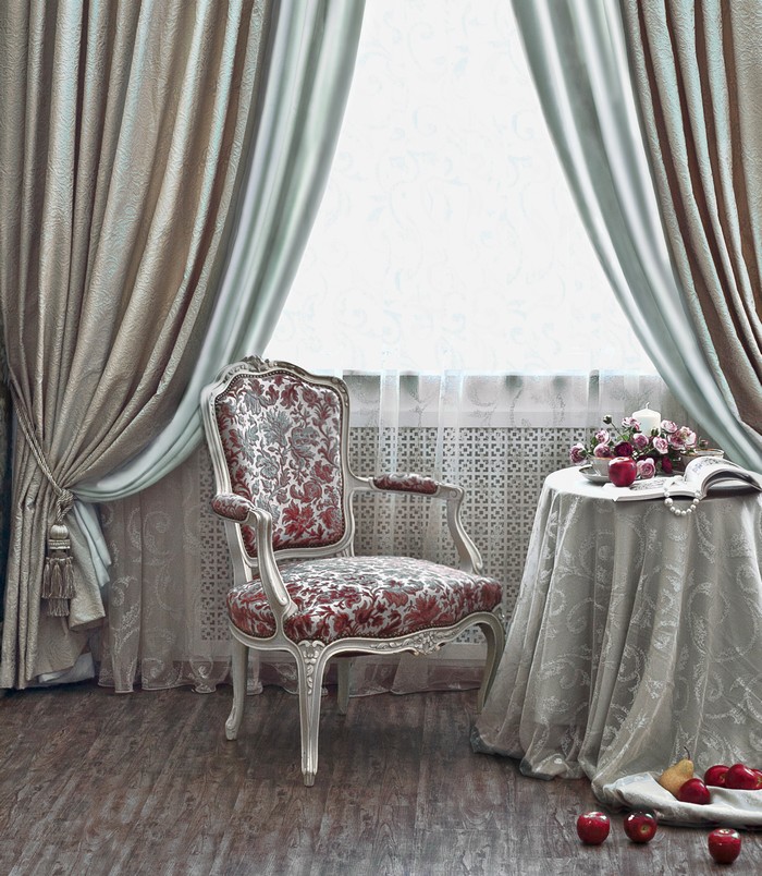 Крупный рисунок следует классическим мотивам и акцентирует внимание на изысканной роскоши. Портьерные и декоративные ткани открывают широкие возможности для оформления проектов, выдержанных в светлых пастельных тонах или монохромной цветовой гамме.