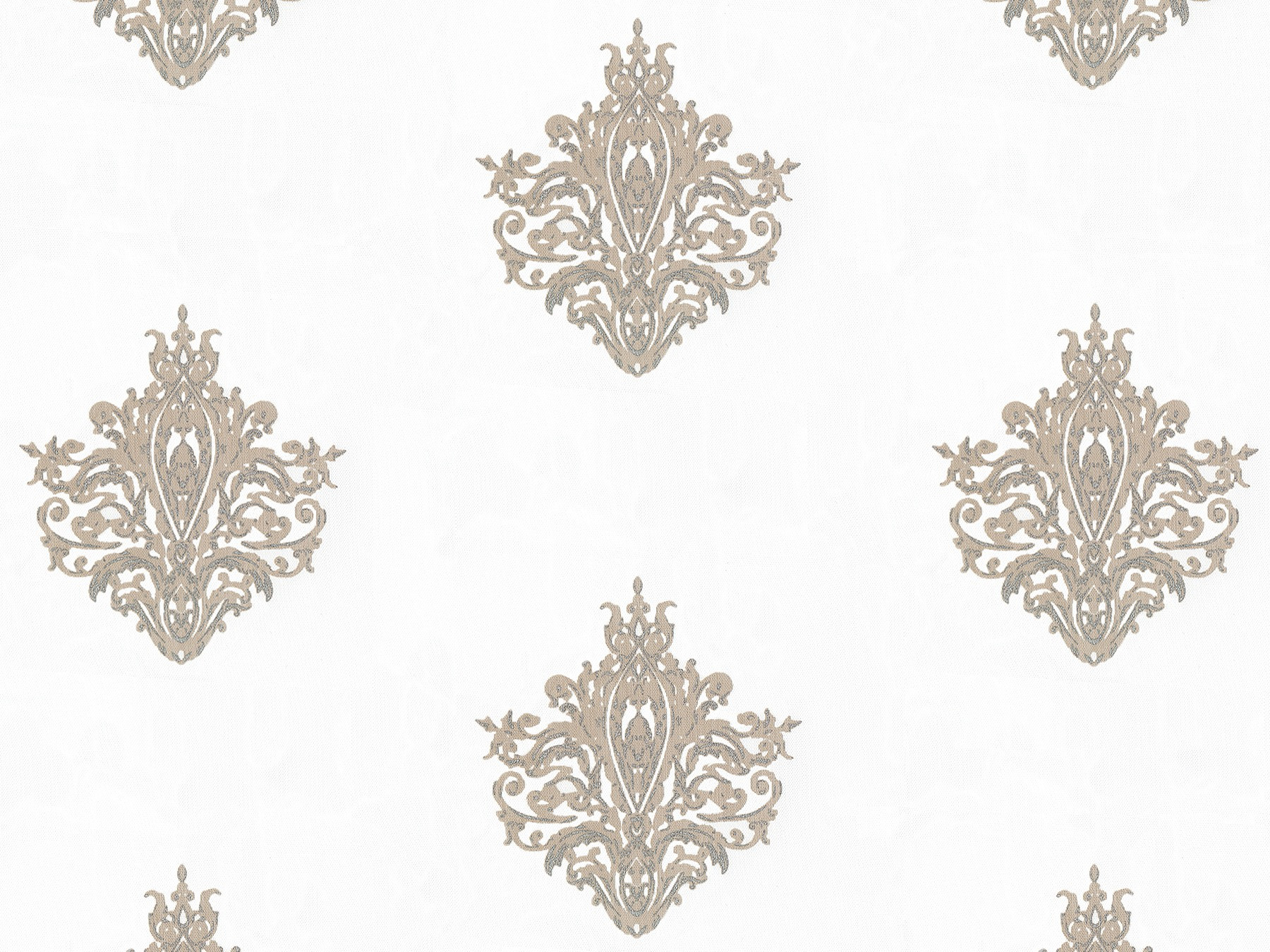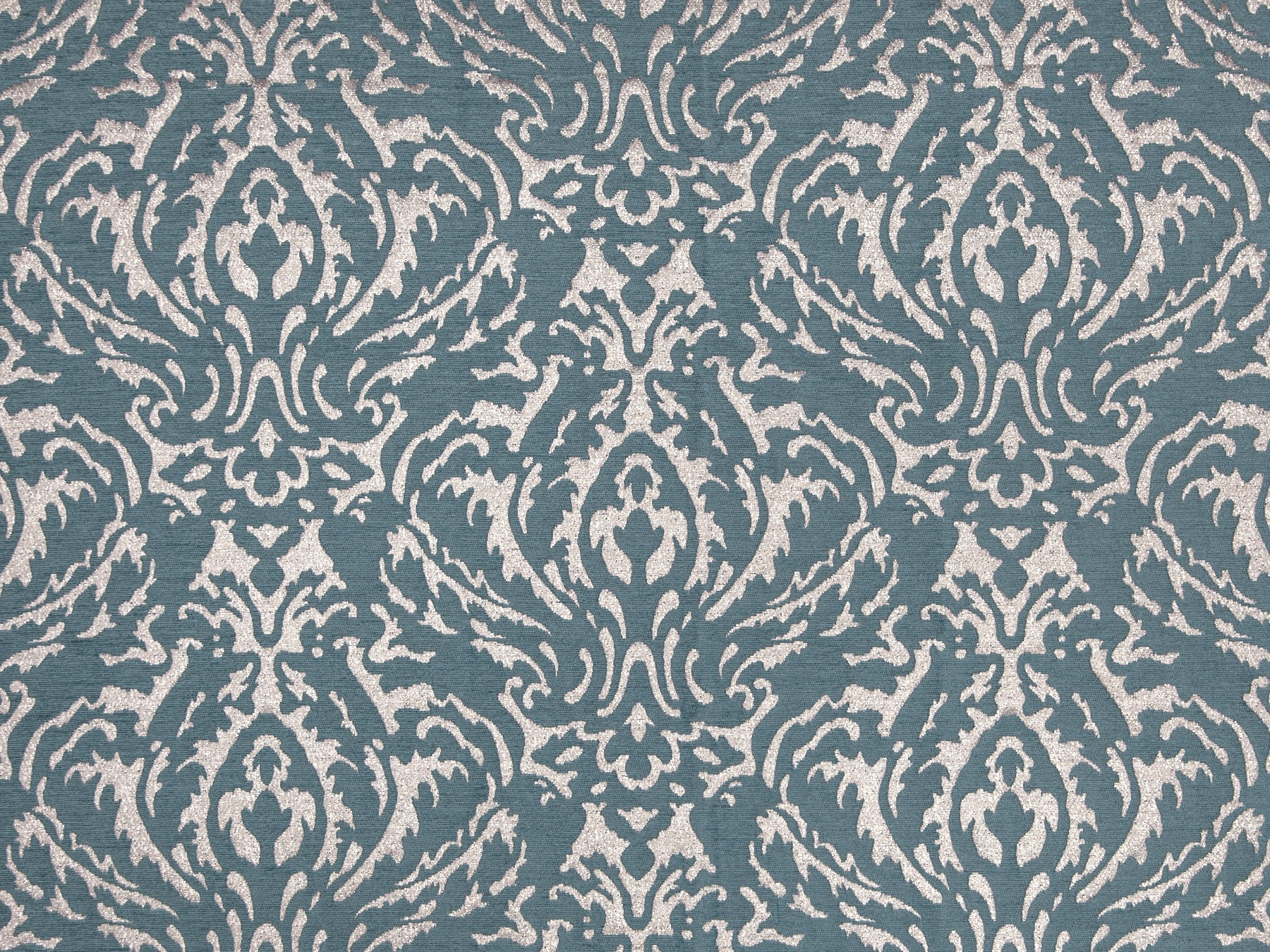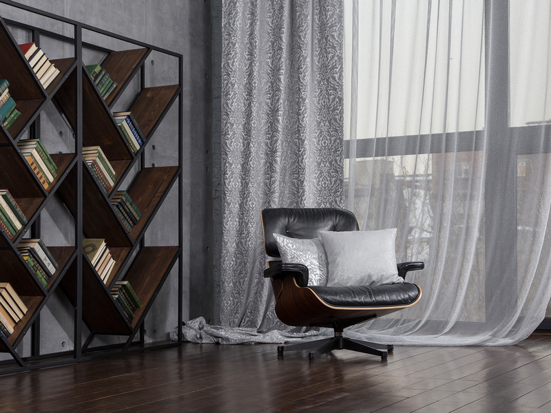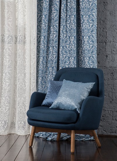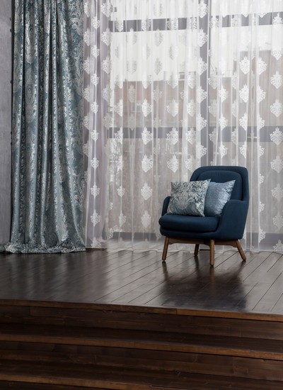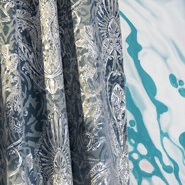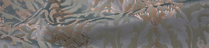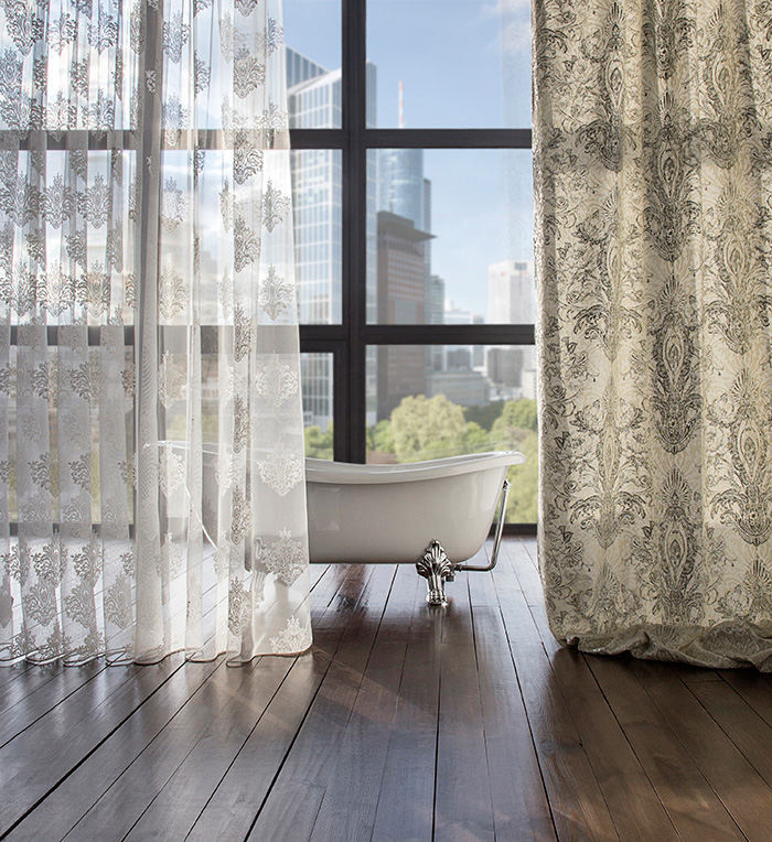 Нежный, прекрасно драпирующийся шенилл с изысканным стилизованным дамаском декорирован нитью люрекса. Изящную линию поддерживает тюлевый компаньон с травлением и объемным рисунком на мягкой основе, имитирующей шенильную нить.