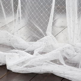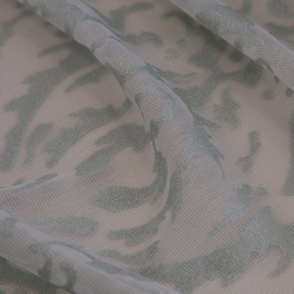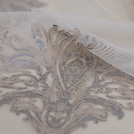 Травление подчеркивает совершенство и обаяние дизайна на тюле с имитацией шенильной нити.