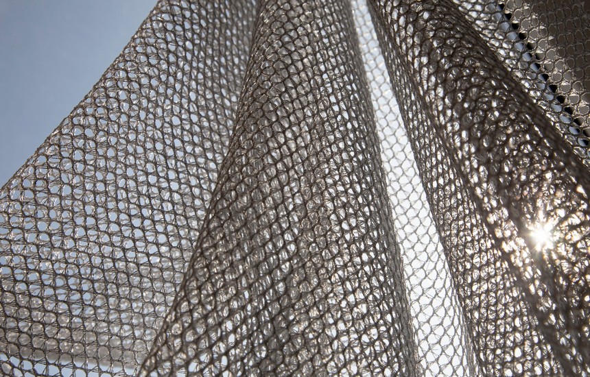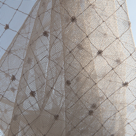 Вместо привычных однотонных компаньонов Dinastia делает выбор в пользу шенилла с имитацией тканого переплетения и легким вытертым эффектом. Эту современную и самостоятельную историю дополняет тюль-сетка с круглой ячейкой и вплетением нити металлизированного люрекса.