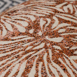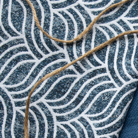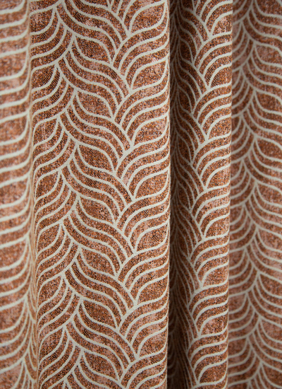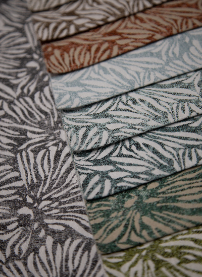 На основе «проступает» декоративная имитация крупнозернистого песка, древесного спила и годичных колец. Лепестки и бутоны крупных цветов расцветают на полотне и возвращают к началу. Лиственный орнамент складывается в чешую, туго заплетенную косичку, созревший колосок.