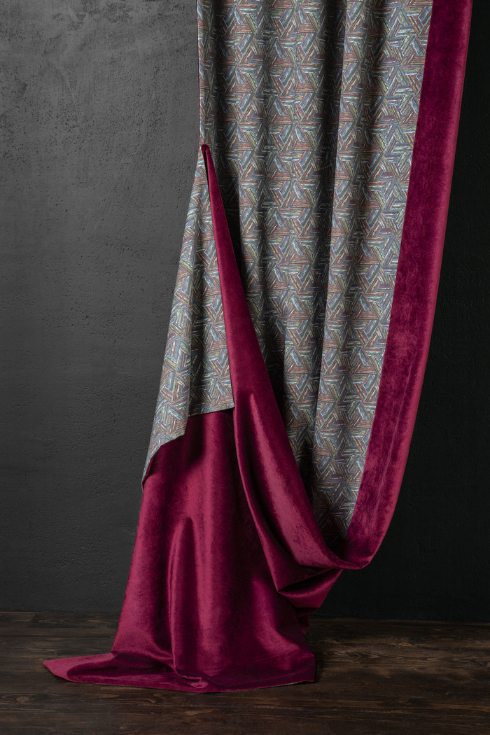 Лицевая сторона ткани приобрела особую бархатистую мягкость. Для этого она прошла специальную финишную обработку на брашировочной машине. Ворс сохраняет эстетику и свое направление даже при интенсивном ежедневном использовании. Ткань великолепно подчеркивает индивидуальный характер мебельной обивки, а по износостойкости не уступает кожзаменителю (100000 ед. Мартиндейла). Чтобы подчеркнуть эстетику бархата и придать готовым портьерам выразительность, рекомендуем использовать ткани E.Degas на подкладе.