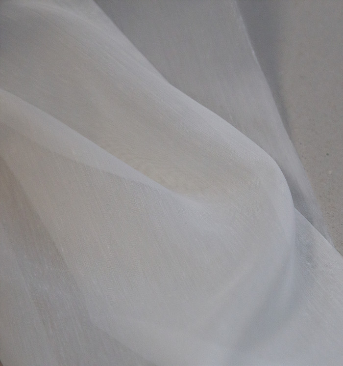 Плотный, но в то же время тонкий и тяжелый тюль с зернистой структурой, который отличают плавные переходы цвета, а также неровная лицевая сторона, рельефная поверхность и шероховатость, придающие ткани аристократичность. Креповый тюль отлично драпируется и не мнется.