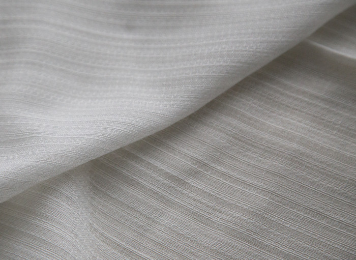 Ткань отличается объемностью дизайна и фактурностью выступающей полоски, которая делает тюль рельефным.