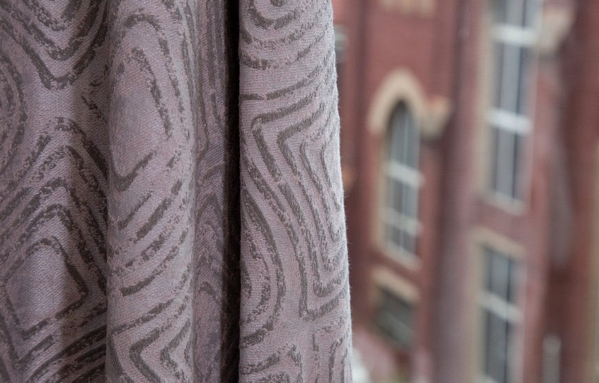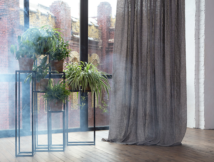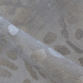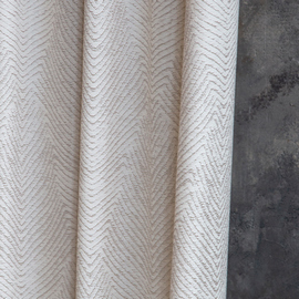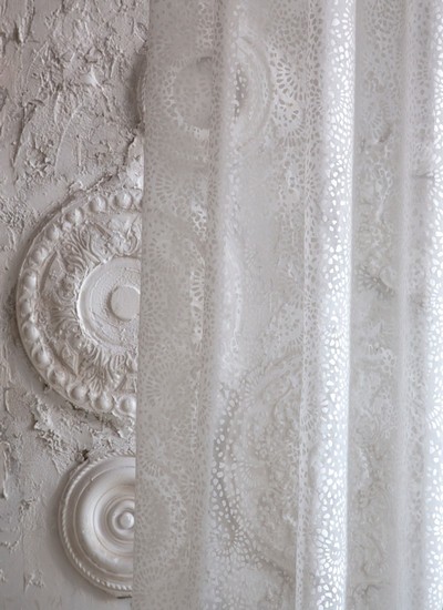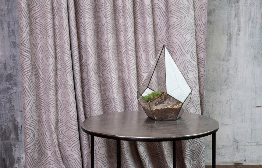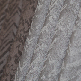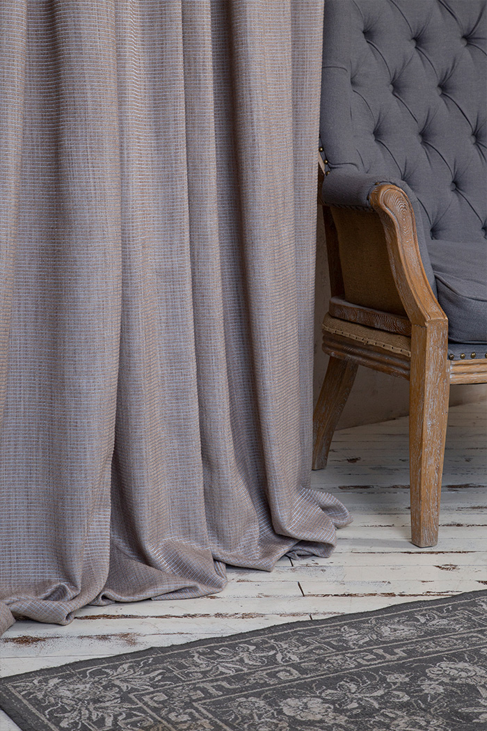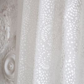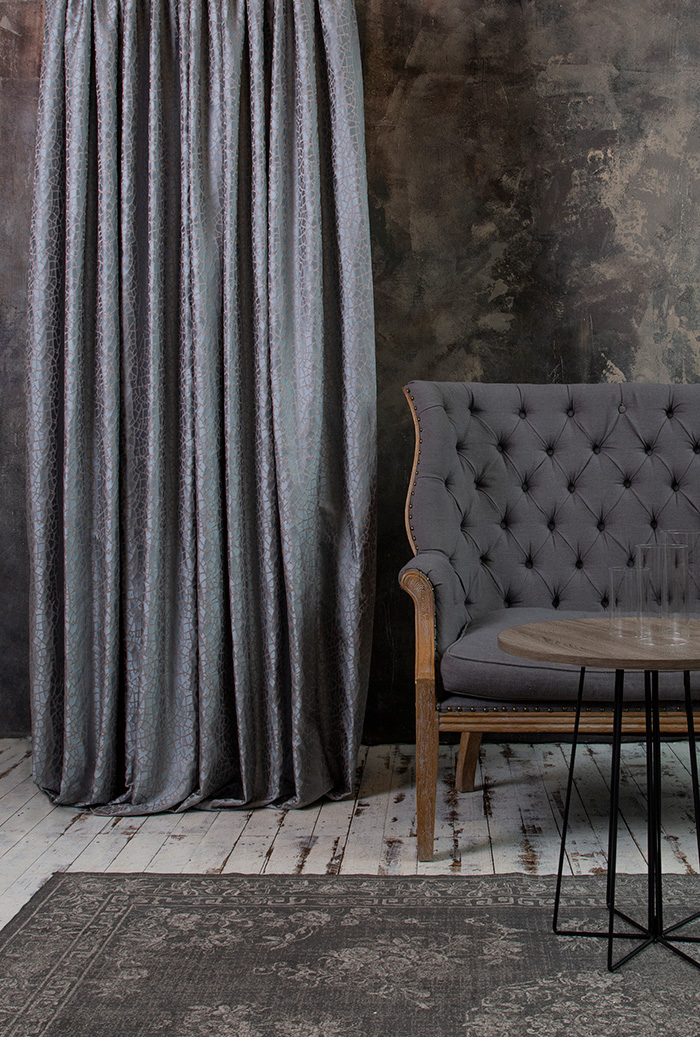 Что мы знаем о самом начале жизни? Мягкий жаккард с рисунком ракушек на поверхности песчаника рассказывает о нашей планете на заре мироздания. Историю отпечатков далекого прошлого продолжает вискозный тюль со стилизованными ракушками.