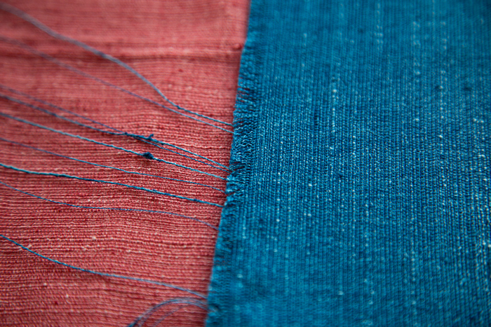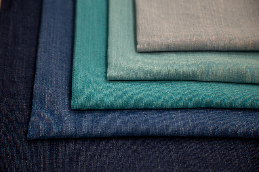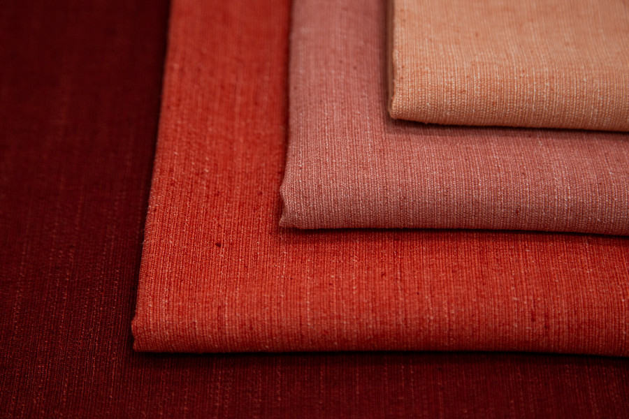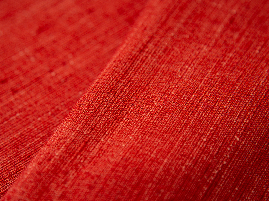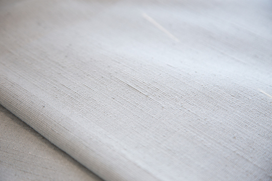 Магия палитры достигает максимальной глубины благодаря тому, что перед окрашиванием каждая нить скручивается из двух разных по толщине и по цвету. Полотняное переплетение частично повторяет неравномерные, необработанные волокна, создаваемые диким шелкопрядом.