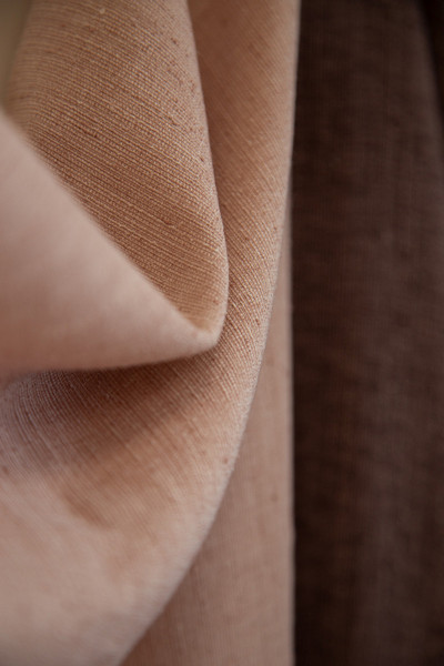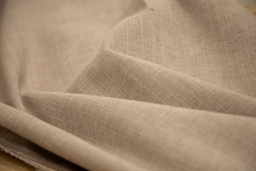 Нити формируют не однотонное полотно, а ткань с неравномерным прокрасом и меланжевым эффектом, который не бросается в глаза, а позволяет красоте ткани раскрыться вблизи.
