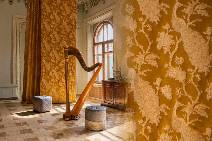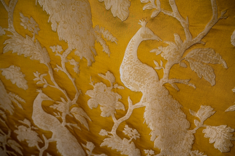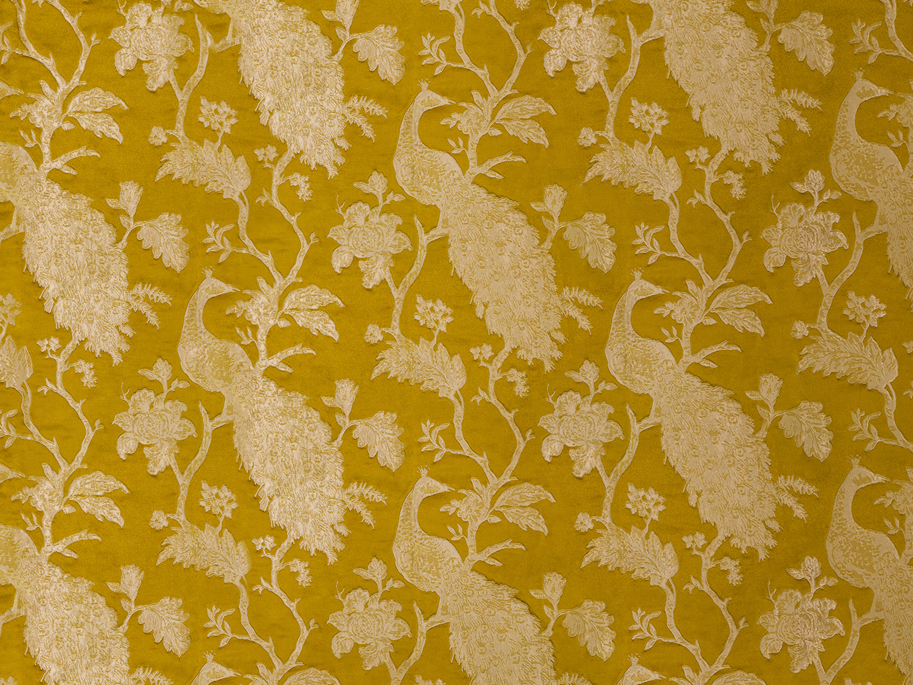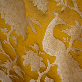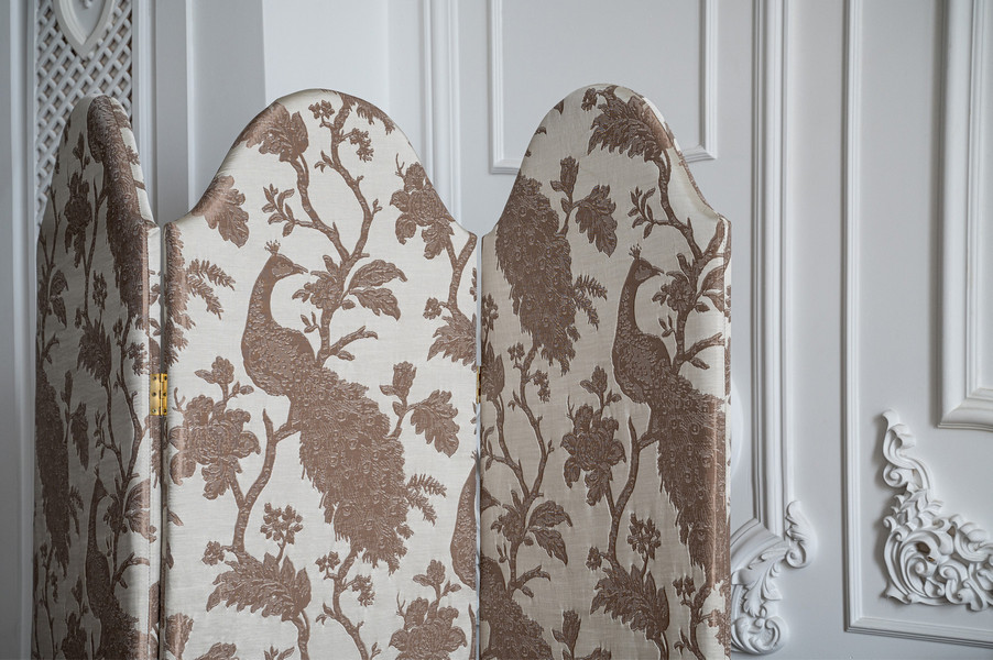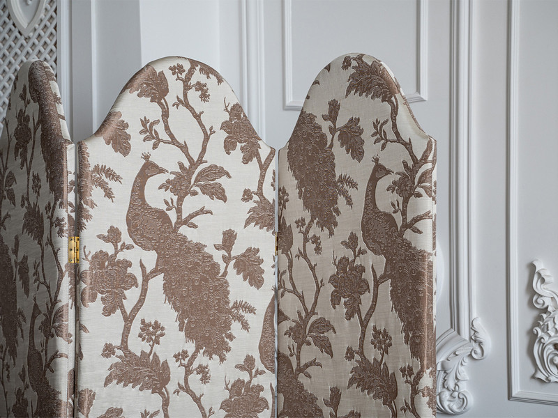 Дизайн посвящен привезенным из Индии Александром Македонским павлинам, которые очень быстро завоевали любовь европейцев. 3D-объем в нем достигается за счет основы. Силуэт павлина при этом будто выгравирован, окаймлен, окантован тканью, и эта разница особенно ощутима на ощупь. Фактурность дизайна и легкий восточный флер в классическом исполнении однозначно выделяют его среди остальных.