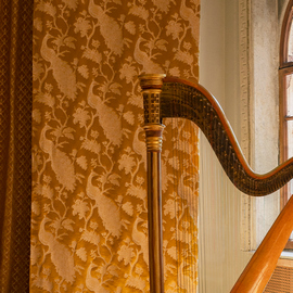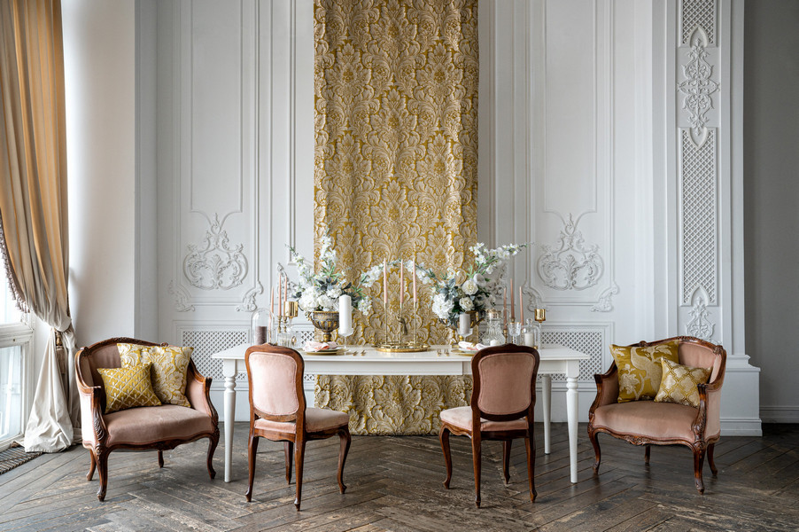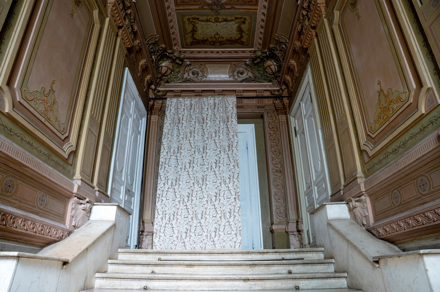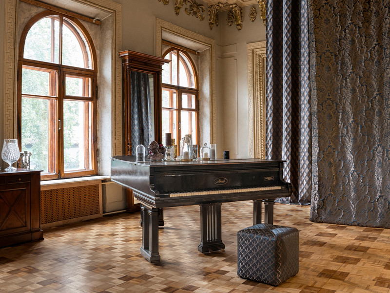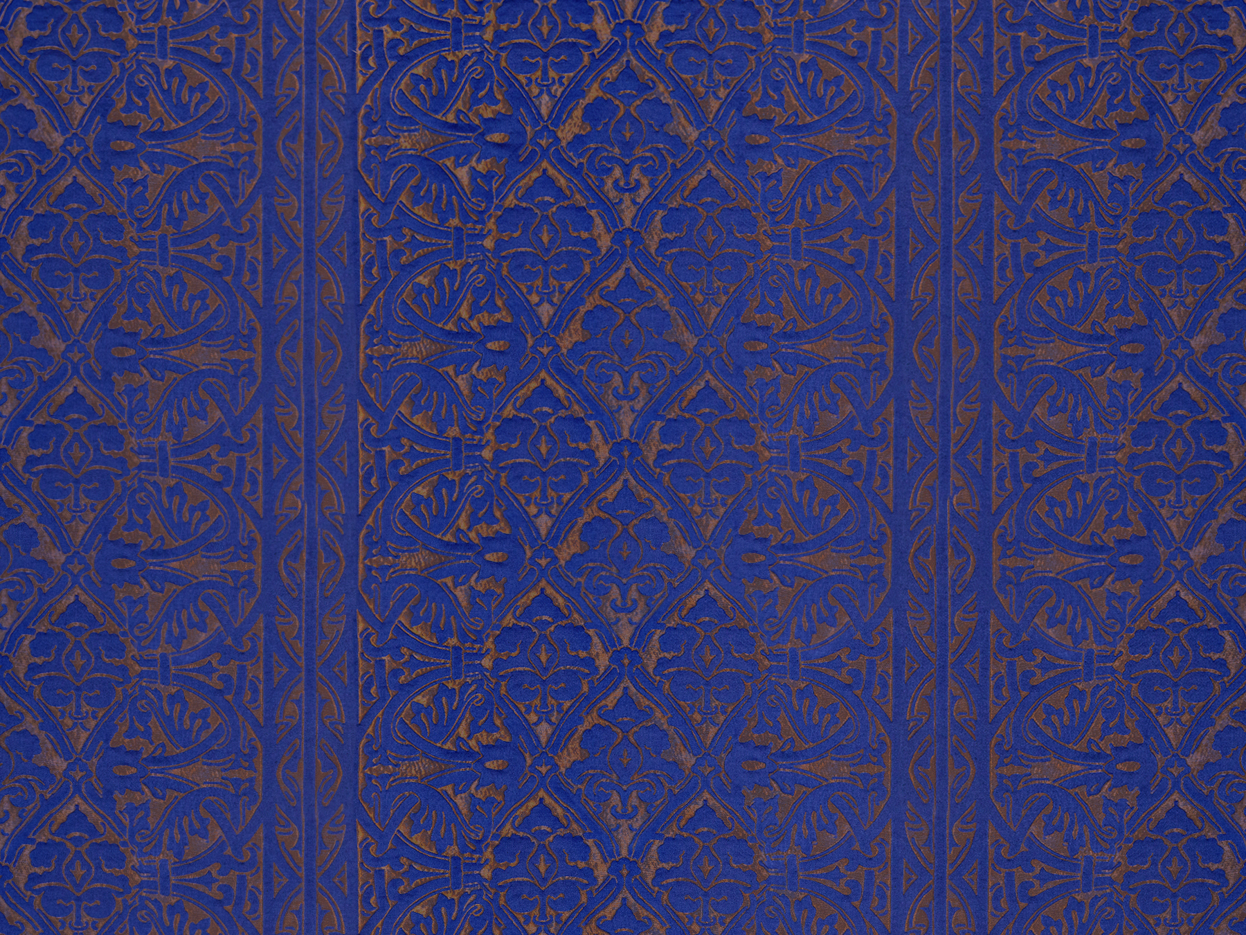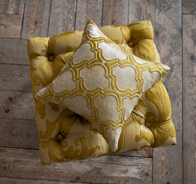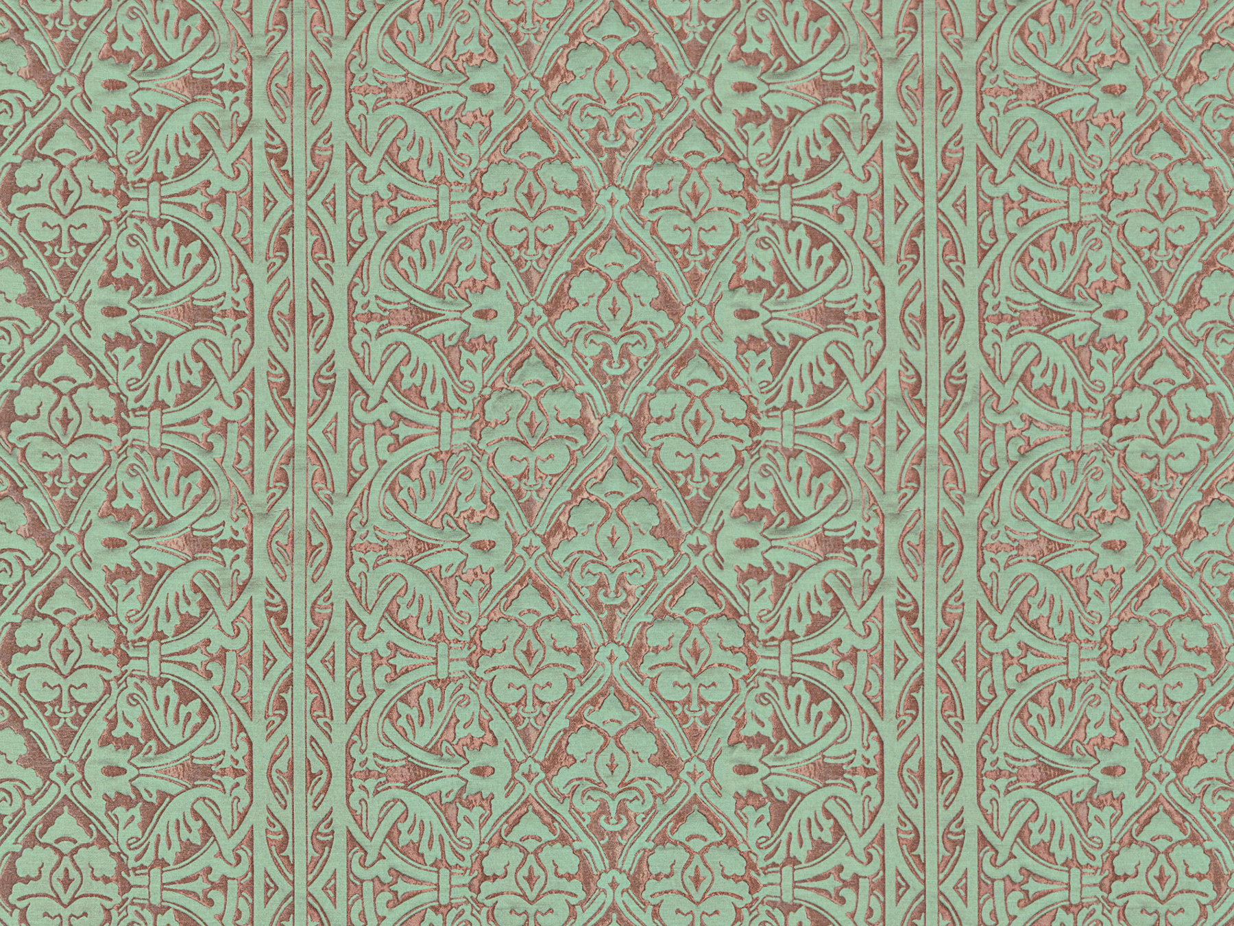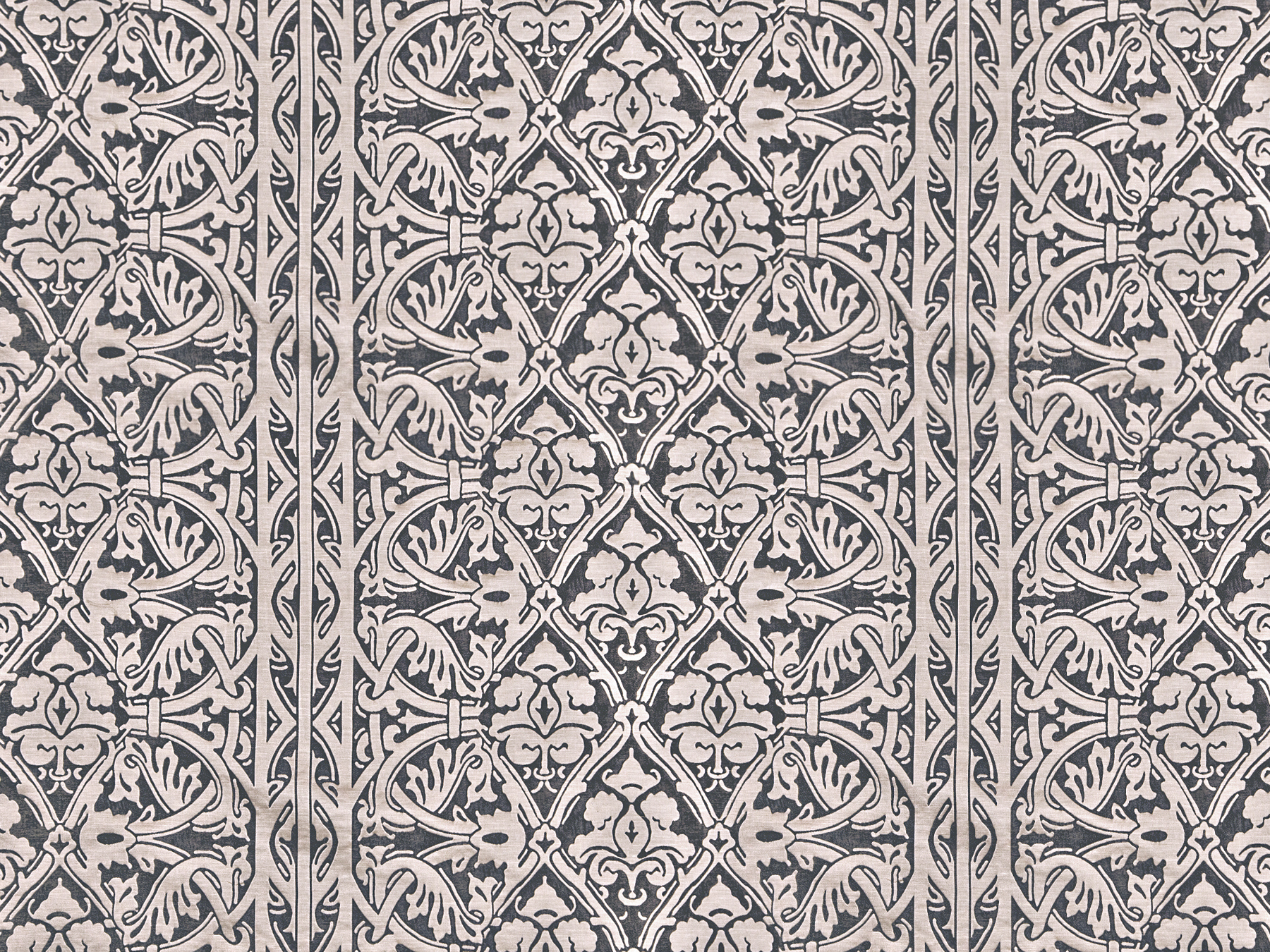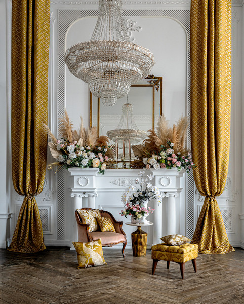Получивший вторую жизнь сначала в Италии, а после и во Франции, этот вертикальный дамасский узор переносит нас в дома французской аристократии семнадцатого века. Крупнораппортные вензели в нем подчеркнуты трехмерным исполнением, и ткань уверенно заявляет о своем благородном происхождении.