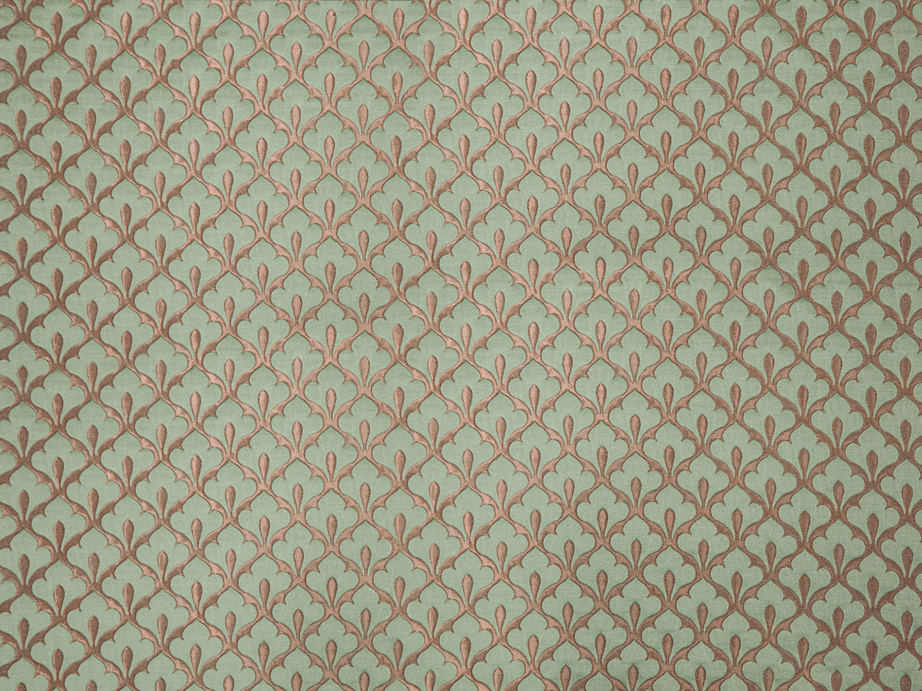 Вариация «флер-де лис», знаменитого цветка лилии. В данном случае «маленькая лилия» рождается из симбиоза растительных мотивов и геометрии, а сочетание двух нитей создает выразительный контраст, который придает орнаменту шарм и усложняет его. Плавные линии напоминают украшавшие королевские резиденции лепные элементы.