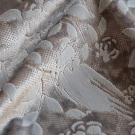 Направленность картинки во всех дизайнах различается за счет особой технологии производства жаккардового разрезного бархата, так как бархат ткется из двух основ, пронизывается нитями ворса, а затем разрезается на станке, в результате чего получается два отзеркаливающих друг друга полотна.