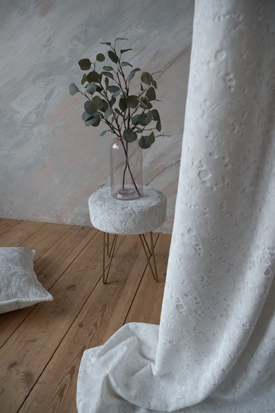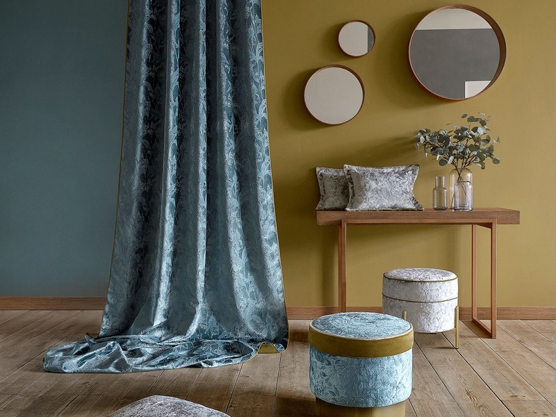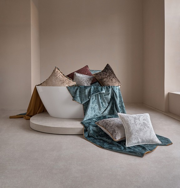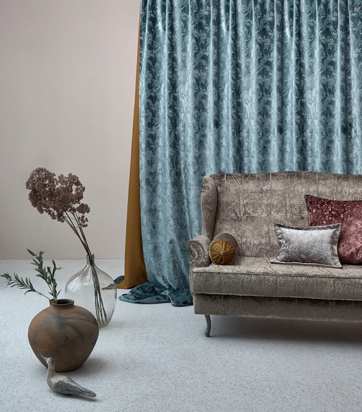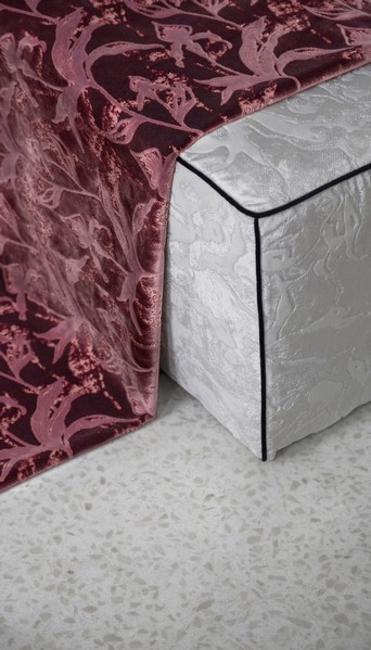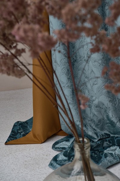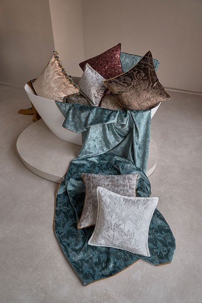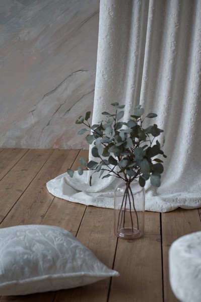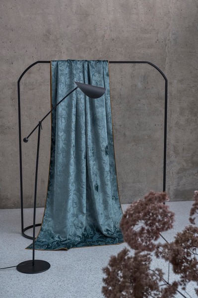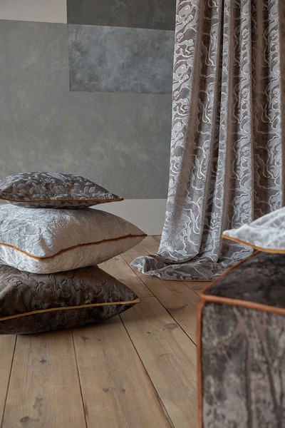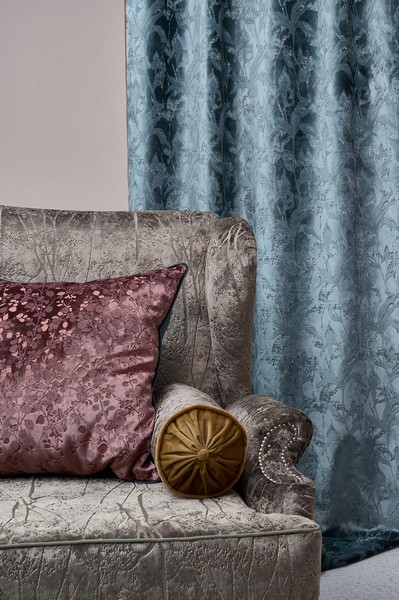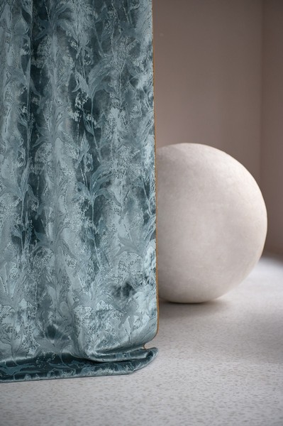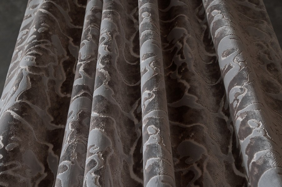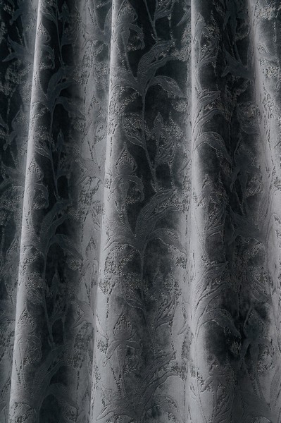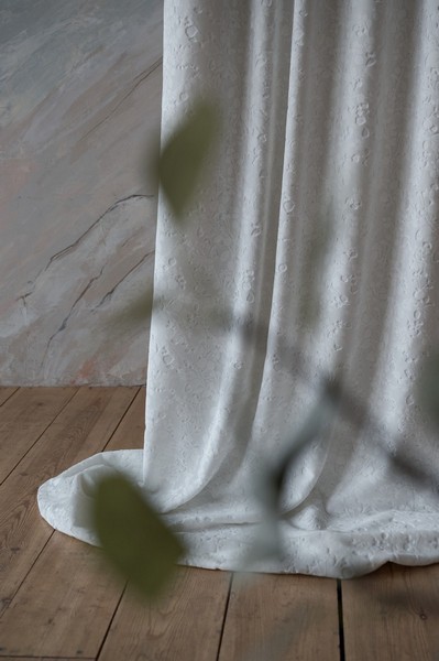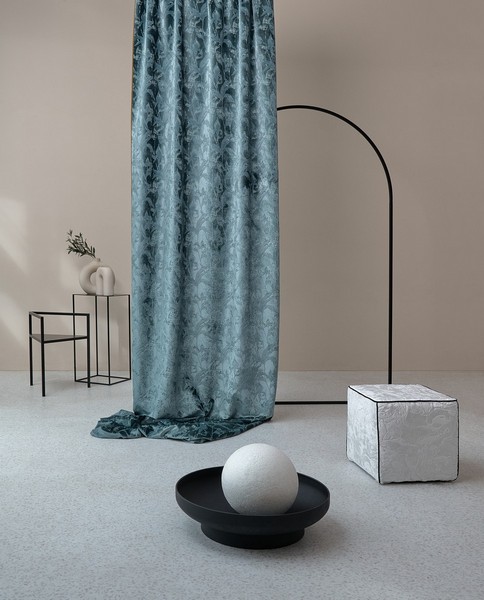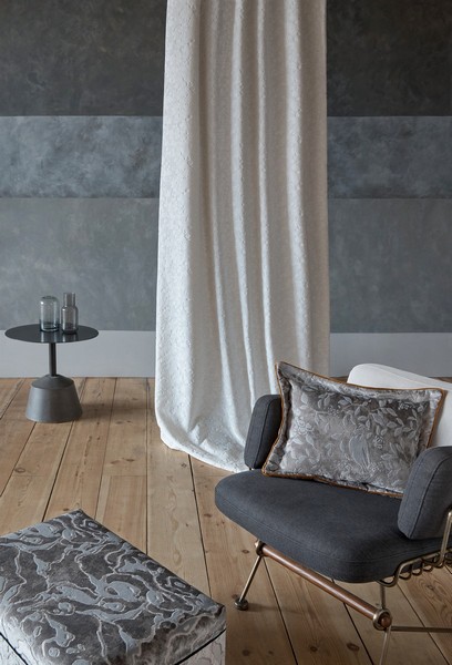 Материал очень пластичный, основательность и продуманность в нем сочетается с отличной драпируемостью и тактильностью, он отличается приятной тяжестью и дает прямые красивые складки, мягкие в волнах. Хотя бархат имеет впечатляющую износостойкость 250 000 циклов по Мартиндейлу, он не только выглядит, но и кажется плюшевым на ощупь. Этого эффекта удалось добиться благодаря итальянской технологии Airo®24, придуманной для того, чтобы смягчать ткань и улучшать ее свойства. Бархат был обработан особой машиной от итальянской компании Biancalani.