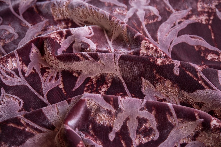 Бархат был обработан отделочной машиной для непрерывной и открытой галтовки тканей от компании Biancalani, которая обеспечивает прекрасную драпировку и стабильные размеры.