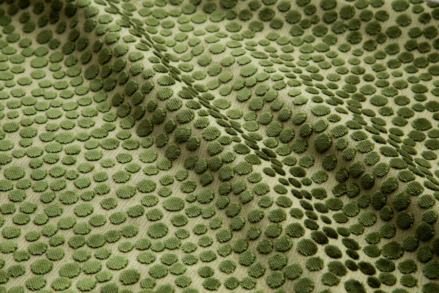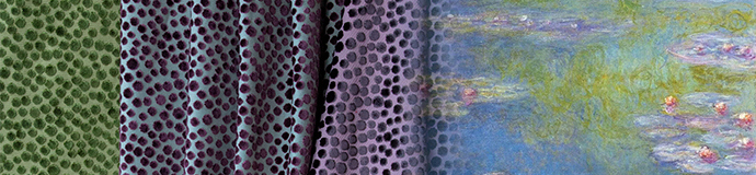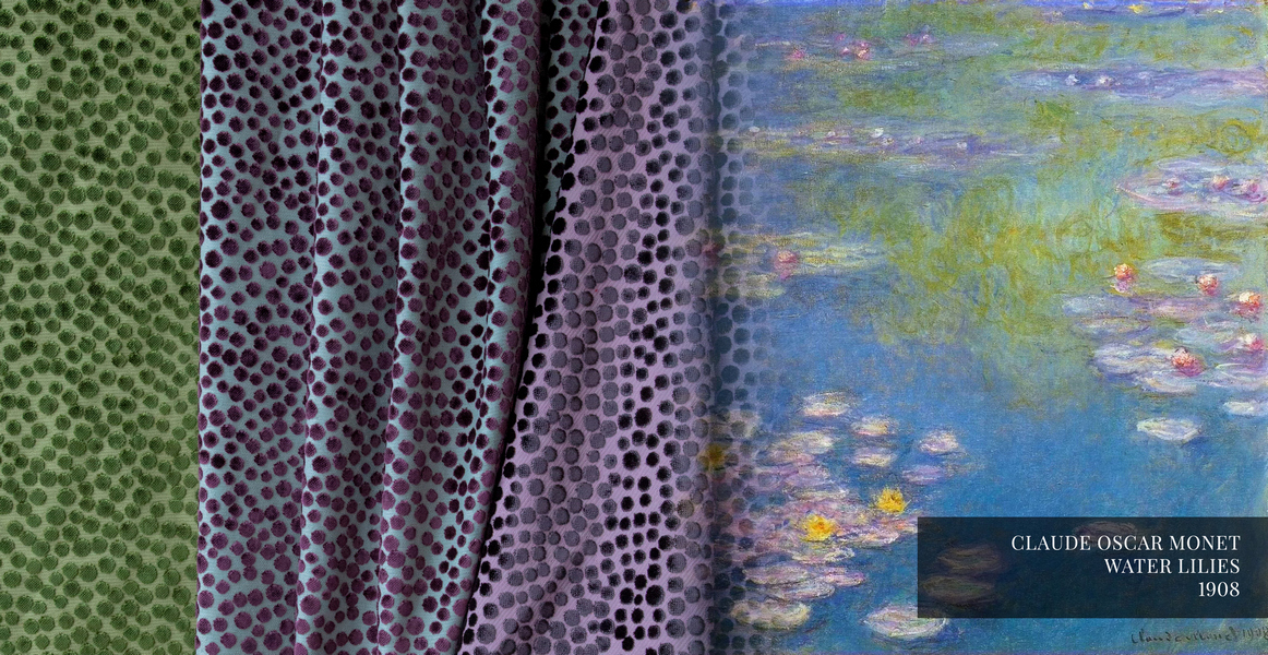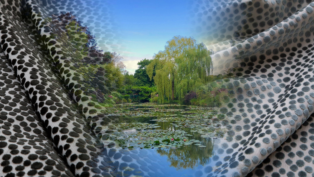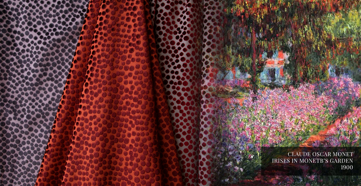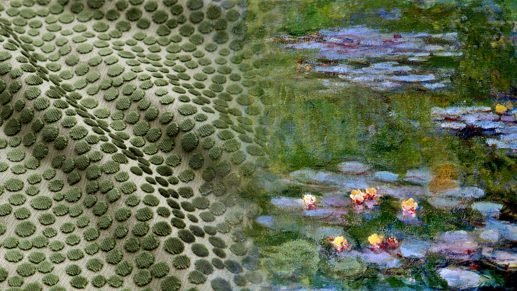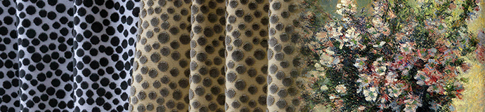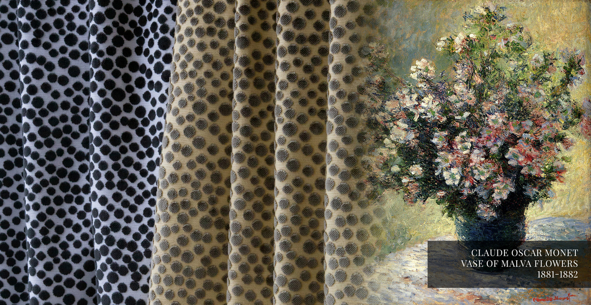 Направленность ворса поддерживает своеобразную игру света. Если ворс направлен вниз, то кружочки выглядят светлее, блики — заметнее. Если же ворс направлен вверх, то бархатные точки поглощают свет. За счет этого секрета в коллекции Monet скрыто в два раза больше цветов.