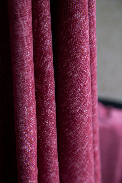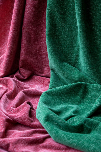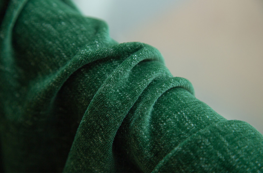 Шенилл драпируется мягкими, струящимися складками, хорошо окрашивается, при этом цвет не выгорает на солнце, а в переплетениях нитей сохраняется почти физически ощутимое тепло. В портьерах шенилл не мнется, не теряет форму, но обратите внимание, что хранить его надо исключительно в рулоне — несоблюдение этого правила может стать причиной заломов.