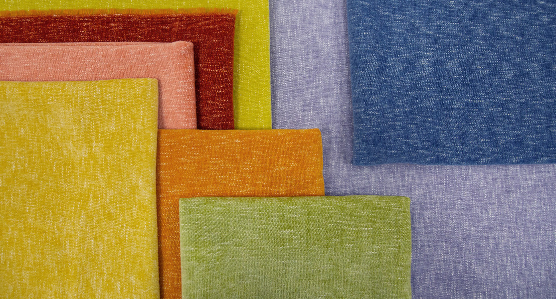 Оплетенные начесанными пушистыми волокнами, вызывающими ассоциации с охапками вереска, шенилловые нити напоминают веточки вереска. Они образуют плотную ворсистую структуру, которая становится основой. В данном случае нитей немного, поэтому ткань обладает потрясающей, поистине магической легкостью.