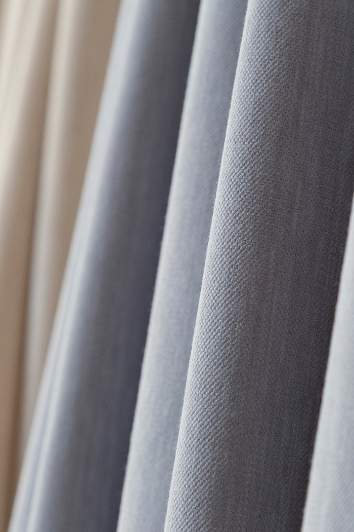 Однотонная ткань выгодно подчеркивает характер пространства, не смещая акценты и не изменяя общую идею.