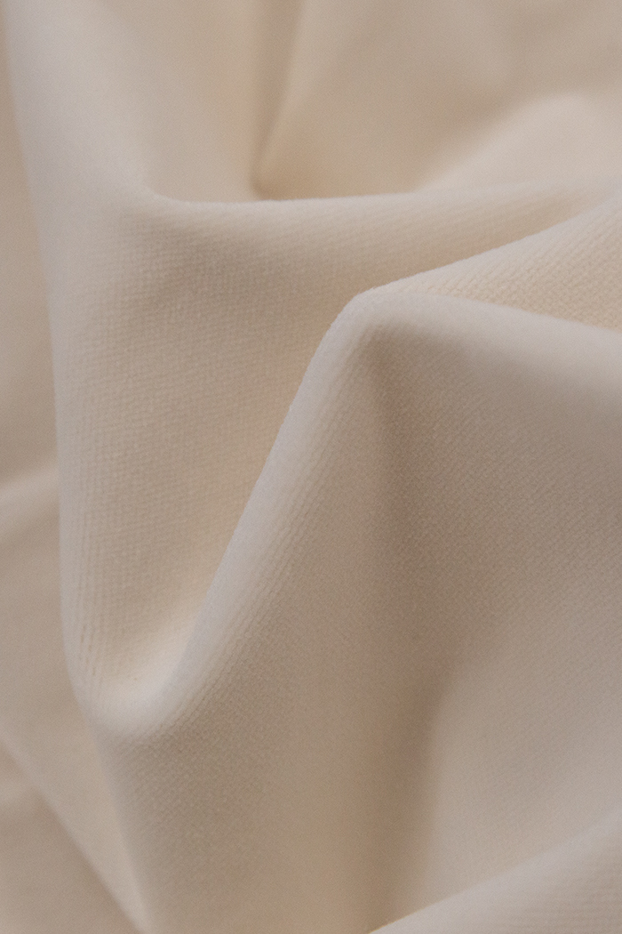 Основа из натурального и мягкого хлопкового бархата продиктовала сдержанное и приглушенное прочтение цветовой палитры. В каталоге нет ярких и обжигающих оттенков, которые ассоциируются с большинством бархатных коллекций. Основной упор сделан на комфорт и гармонию, на цвета, близкие к спокойным оттенкам хлопковых и шерстяных тканей.