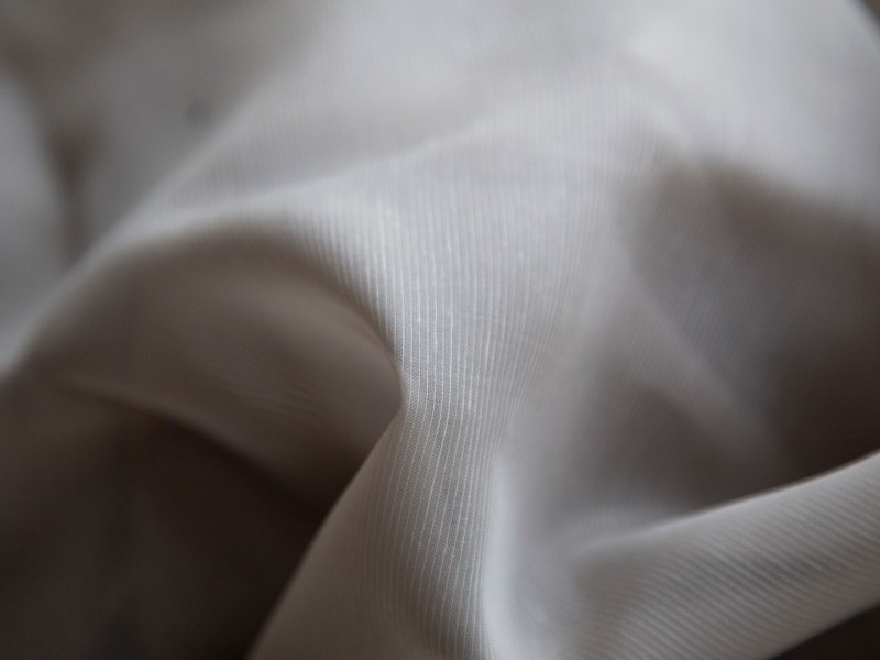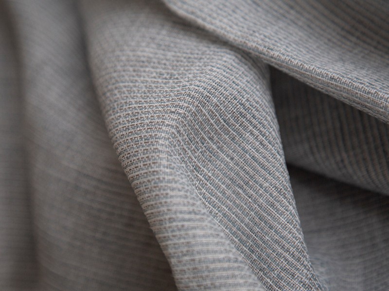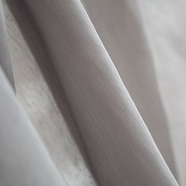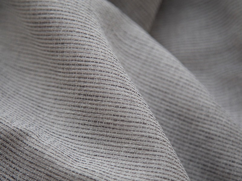 Разная толщина нитей создает красивый меланжевый эффект и неравномерный, но выглядящий естественным, узор. В другой ткани ритм меняется благодаря едва заметным полоскам. Мерцающая фантазийная нить — особый акцент, который уравновешивается и дополняется двумя спокойными нитями. Несмотря на разный характер тюля, он сохраняет форму в изделиях и одинаково хорошо драпируется, играя ровным сиянием в складках. Мягкость достигается благодаря особой технологии покраски.