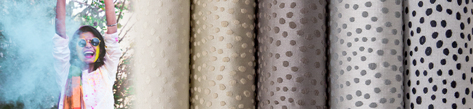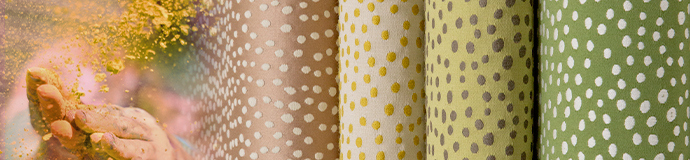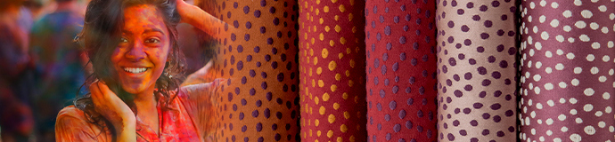 Но не только пряности чувствуются в коллекции Silk Road. Рядом с ними в необычном дизайне раскрываются и расцветают на жаккардовом сатине краски индийского фестиваля Холи, который отмечается в Индии и в Непале. Популярность этого фестиваля веселья, во время которого все танцуют и раскрашивают друг друга яркими красками, давно вышла за пределы Индии, и он также стал частью этой коллекции.
