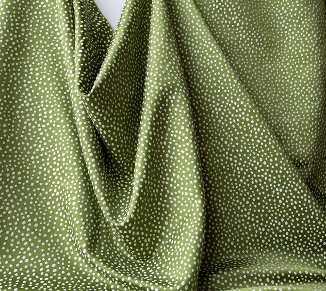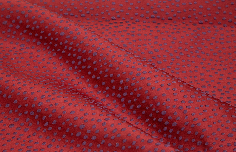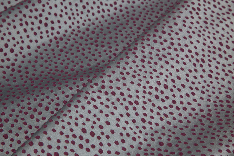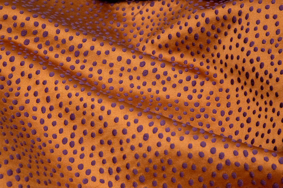 Раскрывающий тему рассыпанных зерен и выполненный на сдержанно сияющей основе горошек из матовой нити отличается заметным объемом. Он же позволяет создать эффект мелкого раппорта с неярко выраженным рисунком, однако увидеть зашифрованную в нитях оптическую иллюзию можно только издалека.