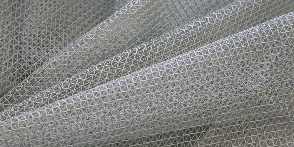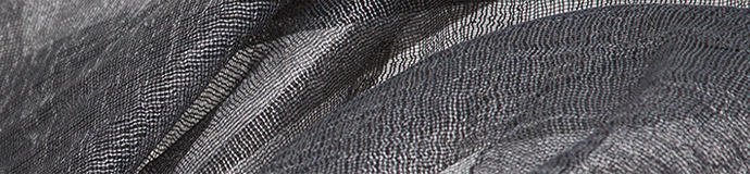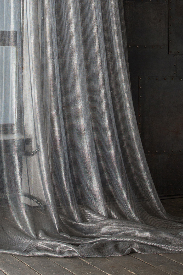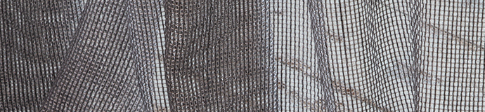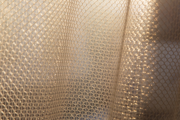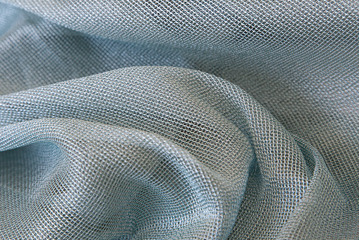 Жесткая, отливающая приглушенным металлическим сиянием, фактурная сетка-кольчуга из коллекции Elixir напоминает сверхтонкий срез соляного кристалла. В коллекции Structure она дополнилась розовым кварцем, голубым, бирюзовым и травянисто-зеленым.