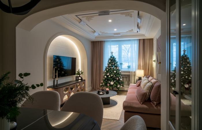 В новом проекте «Квартирного вопроса» в основу концепции легло несколько идей: элементы восточного, классика и современность, плавные формы и линии, которые имеют символическое значение для семьи.