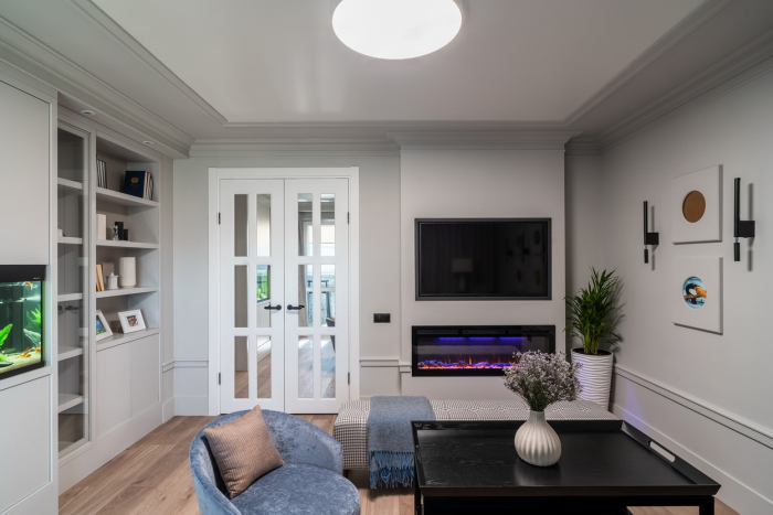 При разработке проекта герои «Квартирного вопроса» попросили дизайнера Инну Файнштейн сделать упор на классику и сохранить место для настольных игр в семейном кругу. Все пожелания были учтены, в результате чего появилось функциональное, стильное и уютное пространство.
