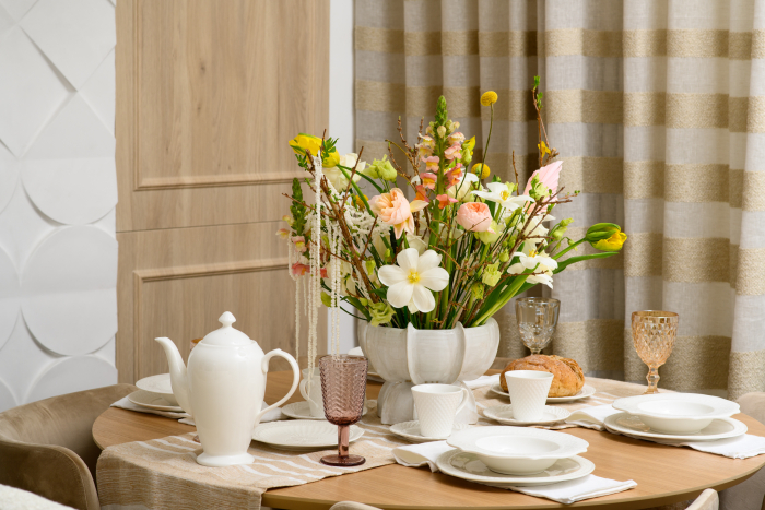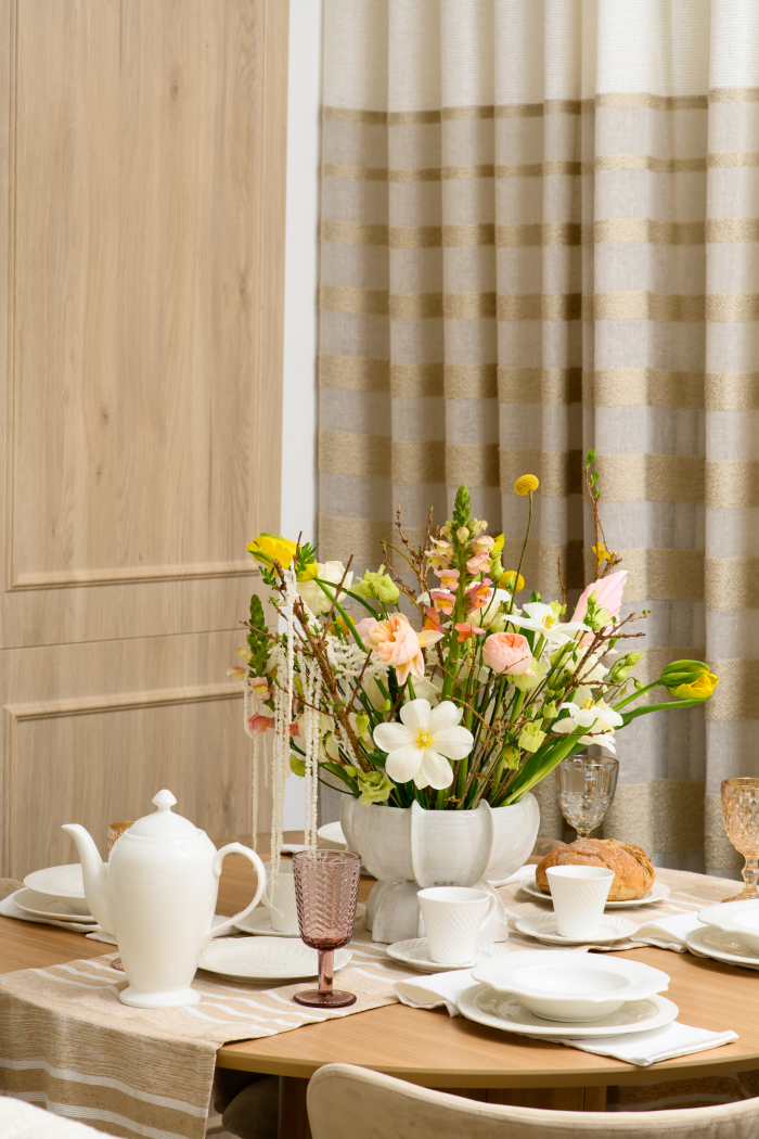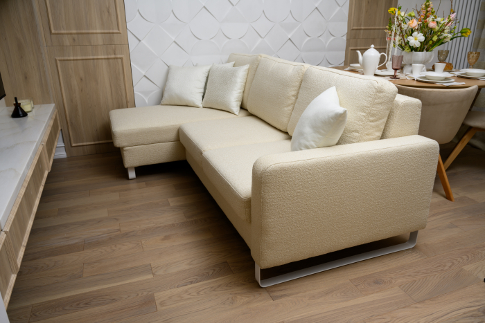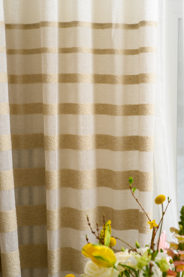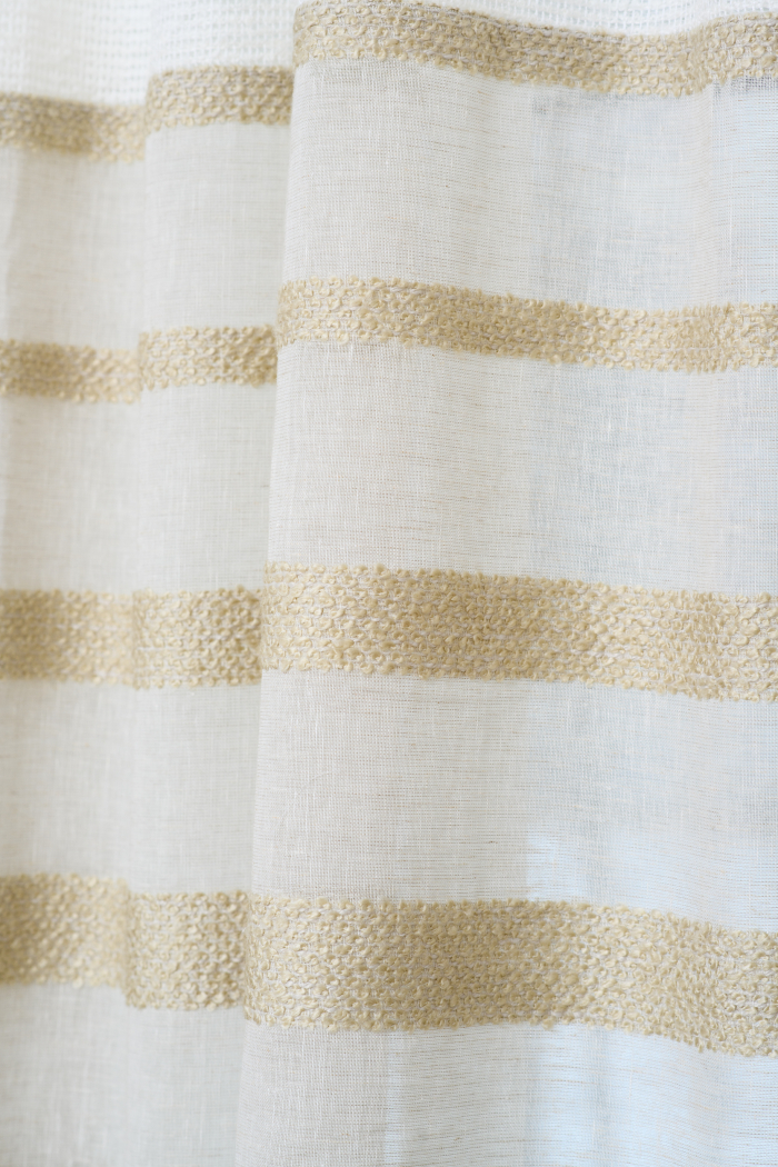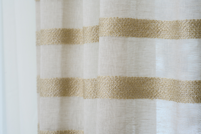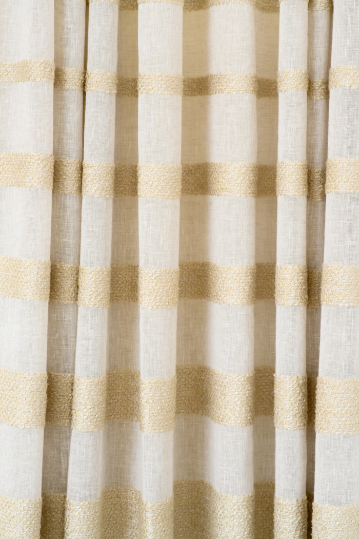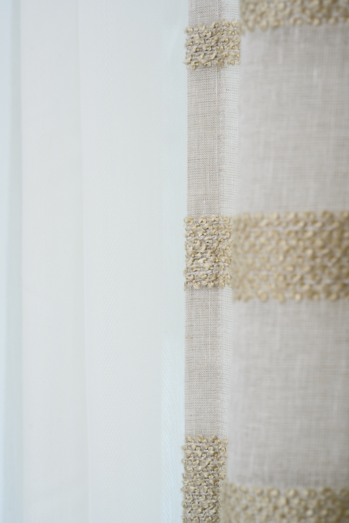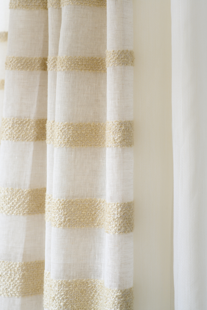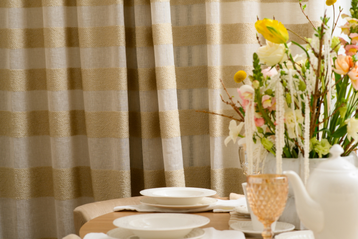 В новом проекте «Квартирного вопроса» дизайнер Лидия Чернова оформляла кухню-гостиную. Основной упор был сделан на функциональность и семейный уют пространства, палитру интерьера поддержал текстиль: для портьер была выбрана купонная ткань натурального льняного оттенка Dock (228/21) из коллекции Helsinki и фактурная ткань с декоративными нитями Snow (232/12) из того же каталога.