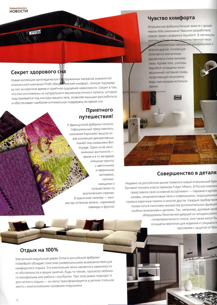 Яркие цвета и необычные фактуры тканей из новой коллекции «Bon Voyage» от бренда Venesto опубликованы в журнале «Лучшие интерьеры».