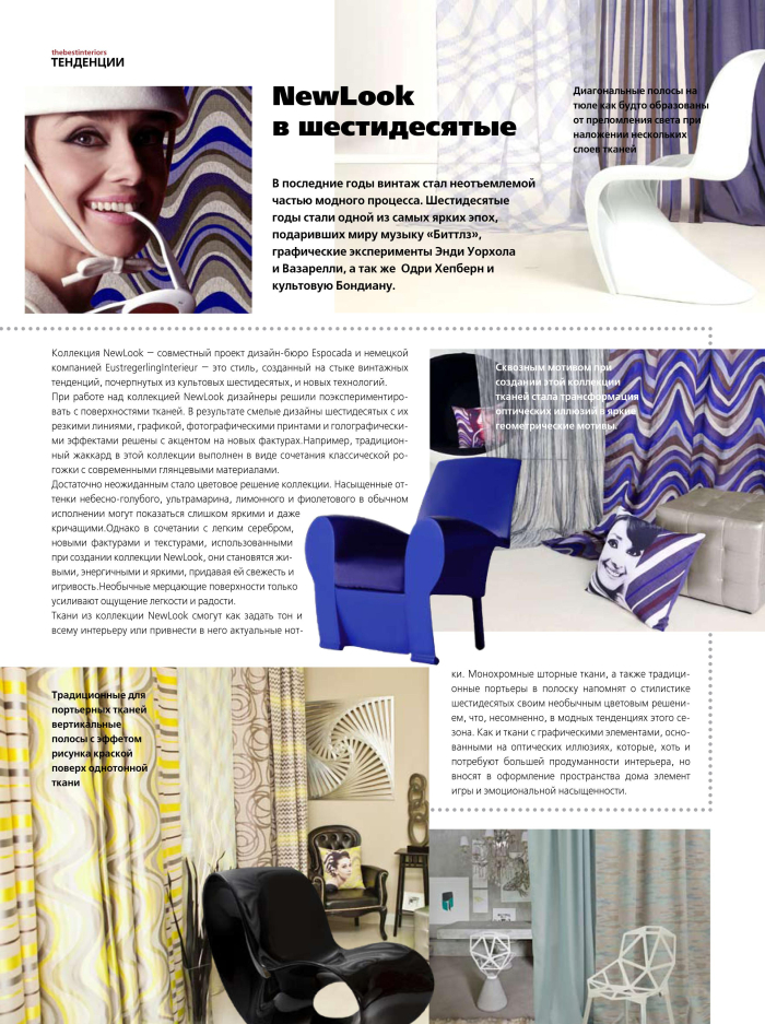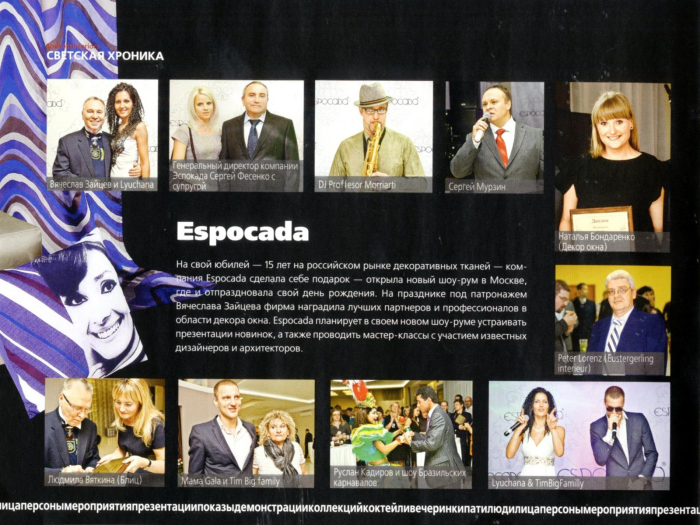 В ноябрьском номере журнала представлена новая коллекция NEW LOOK – совместный проект дизайн-бюро Espocada и немецкой компании Eustregerling Interieur, а также фотоотчет о праздновании 15-летия компании.