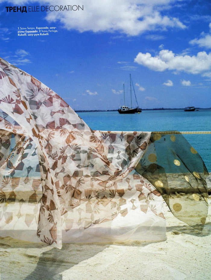 В сдвоенном летнем номере журнала «Elle Decoration» вышла полосная реклама коллекции Espocada «Continent» и фотосессия тканей «Tempo».