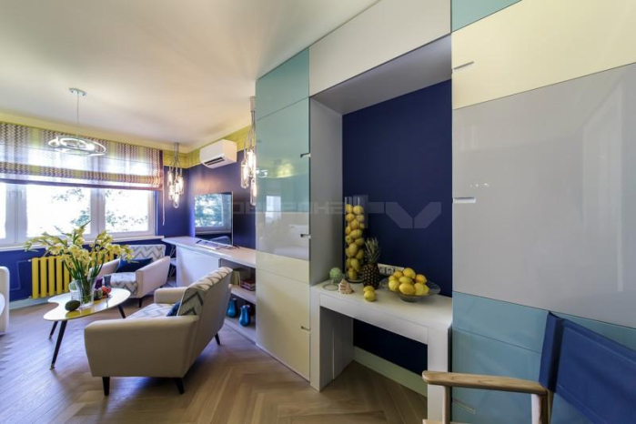 Для создания необычной футуристической атмосферы дизайнер Марина Брагинская использовала ткань Espocada «New Look» с характерной волной-зигзагом и приятным деграде. Сочетание в одной ткани сразу нескольких цветов – оттенков серого и желтого – выделяет ее в интерьере и притягивает взгляд к окну. Мягкая сетчатая основа с крупным плетением прекрасно дышит и пропускает много света. Ткань может использоваться даже в качестве двусторонней. И лицевая, и обратная сторона на ощупь напоминают высококачественный хлопок с отличной выделкой.
