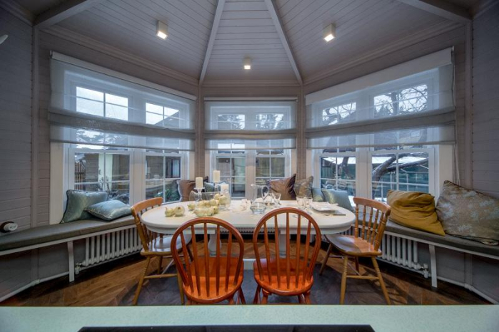 Креативная команда телепроекта «Дачный ответ» вместе с архитектором Татьяной Смирновой предложила свой взгляд на интерьер в духе охотничьего домика. Когда-то дачный дом героев программы находился у самого края леса и принадлежал леснику, поэтому главным пожеланием было создать уютное пространство с «человечным» провансом. Внимание к деталям и удачный выбор текстиля помог осуществить давнюю мечту!